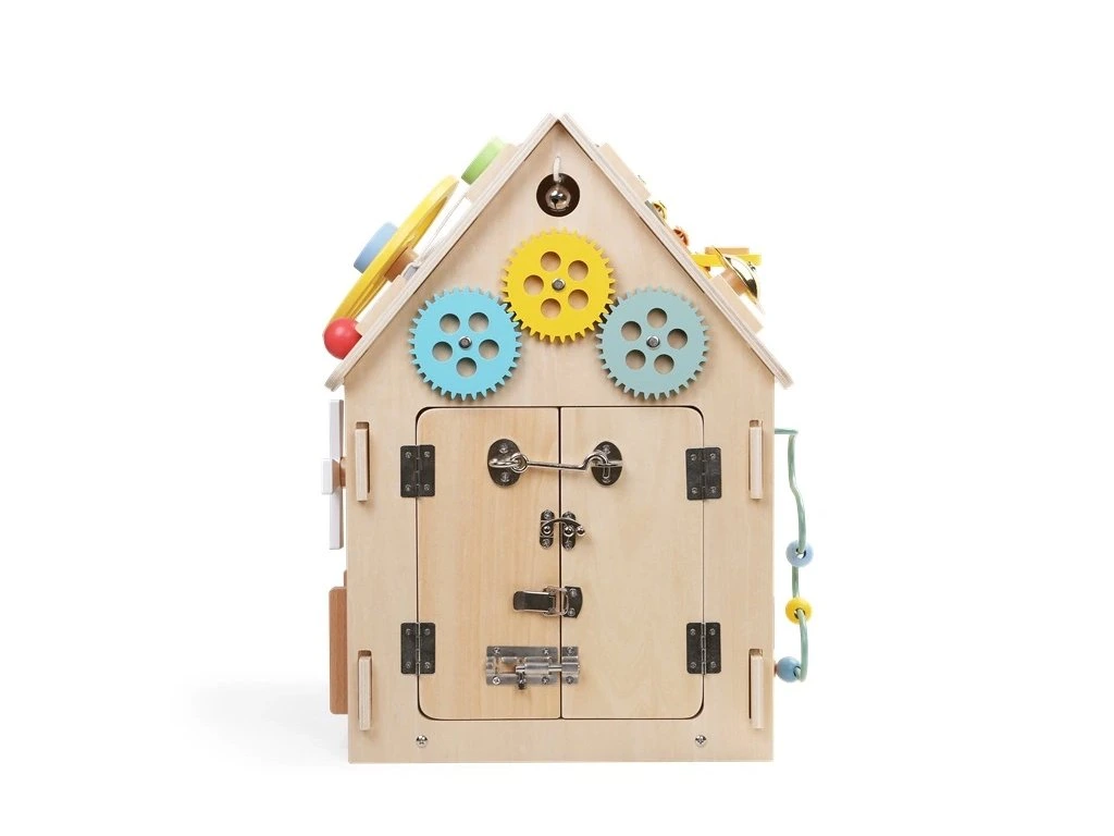Objevte svět zábavy a učení s dřevěným domečkem plným aktivit! Každá strana nabízí množství interaktivních prvků, které děti zabaví a zároveň podpoří rozvoj jemné motoriky, logického myšlení i smyslového vnímání.