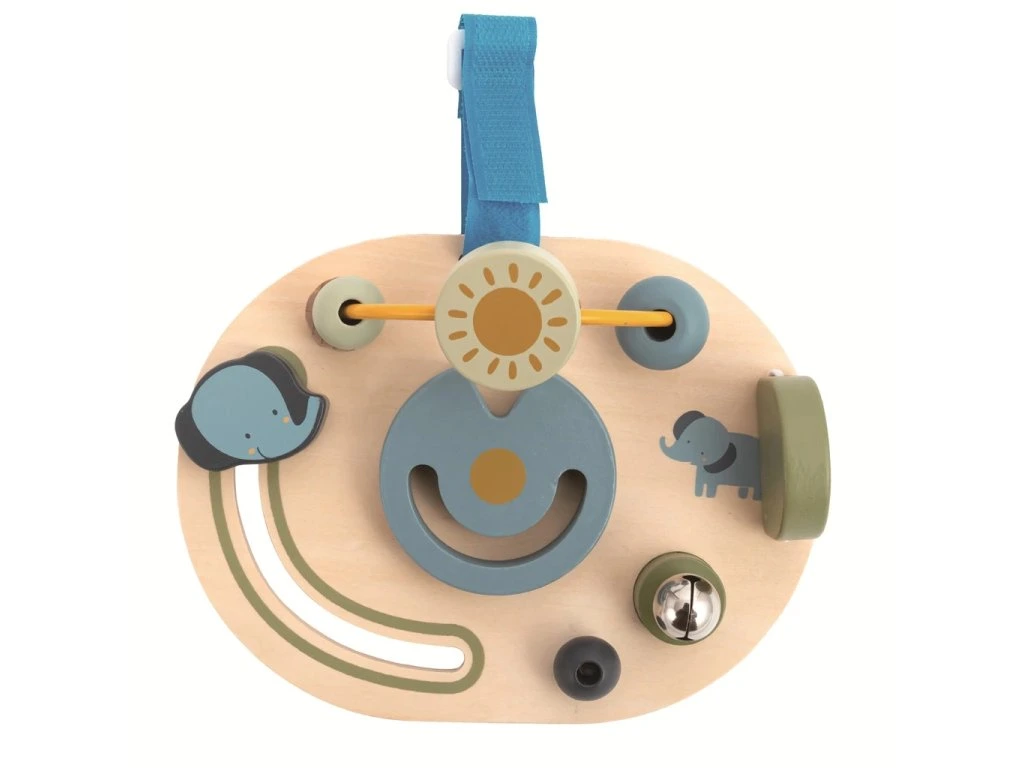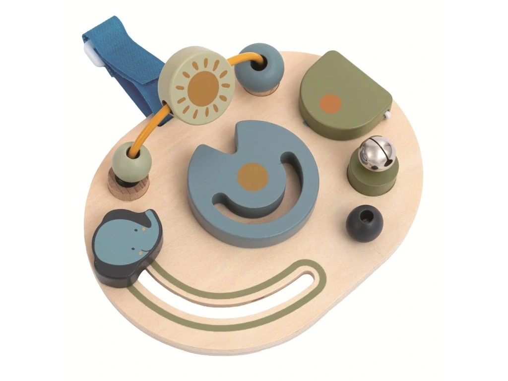 Jednoduchá hrací deska s motivem slona přináší dětem množství zábavy, díky které rozvíjejí zručnost, zvědavost, jemnou motoriku a koordinaci ruka–oko.