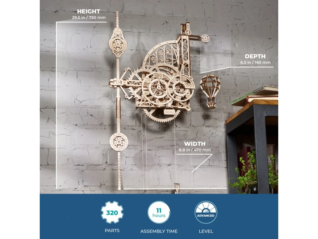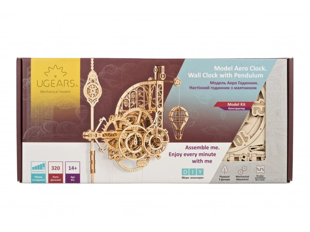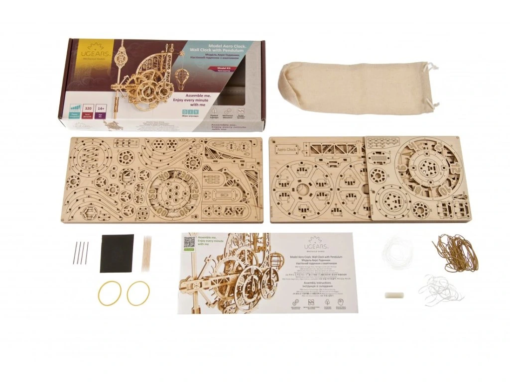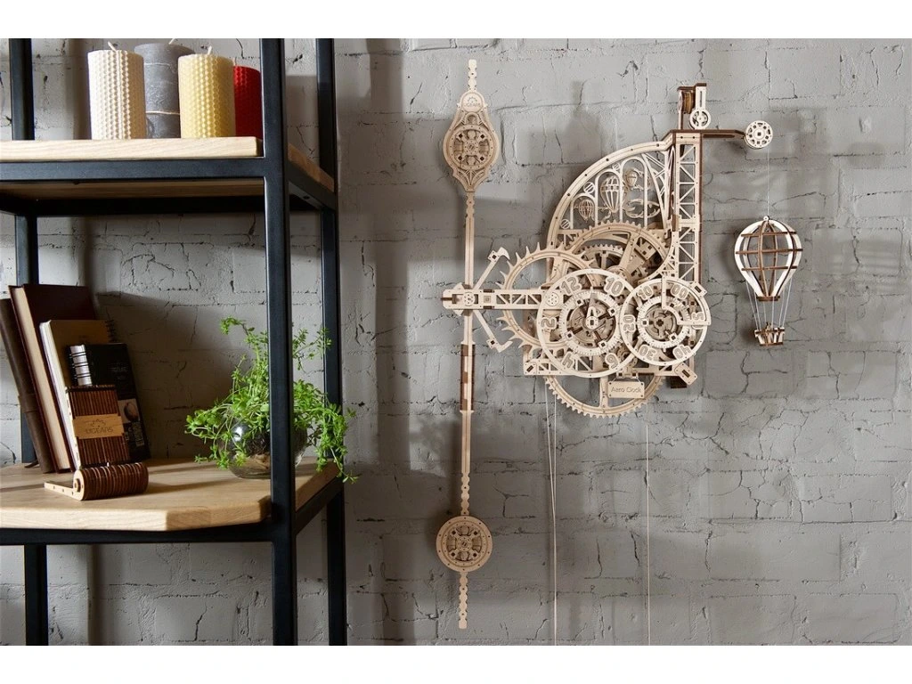 Aero Clock nejsou jen dřevěný mechanický 3D model nebo pěkná ozdoba. Ugears hodiny jsou skutečné pracující hodiny, které si můžete sami sestavit, zavěsit na stěnu, natáhnout a sledovat, jak ubíhají sekundy, minuty a hodiny. Aero Clock představuje geniální puzzle a mechanismus hodín DIY, který se liší od jakýchkoli jiných hodín. Je to krásný kus precizního inženýrství, který odhaluje fungování hodín s kyvadlem s hmotnostním závažím každému, kdo hodiny skládá a obdivuje. Jako všechny modely Ugears, má i ten "extra šmrnc", kterým dokáže očarit a zaujmout naši rostoucí skupinu fanoušků.