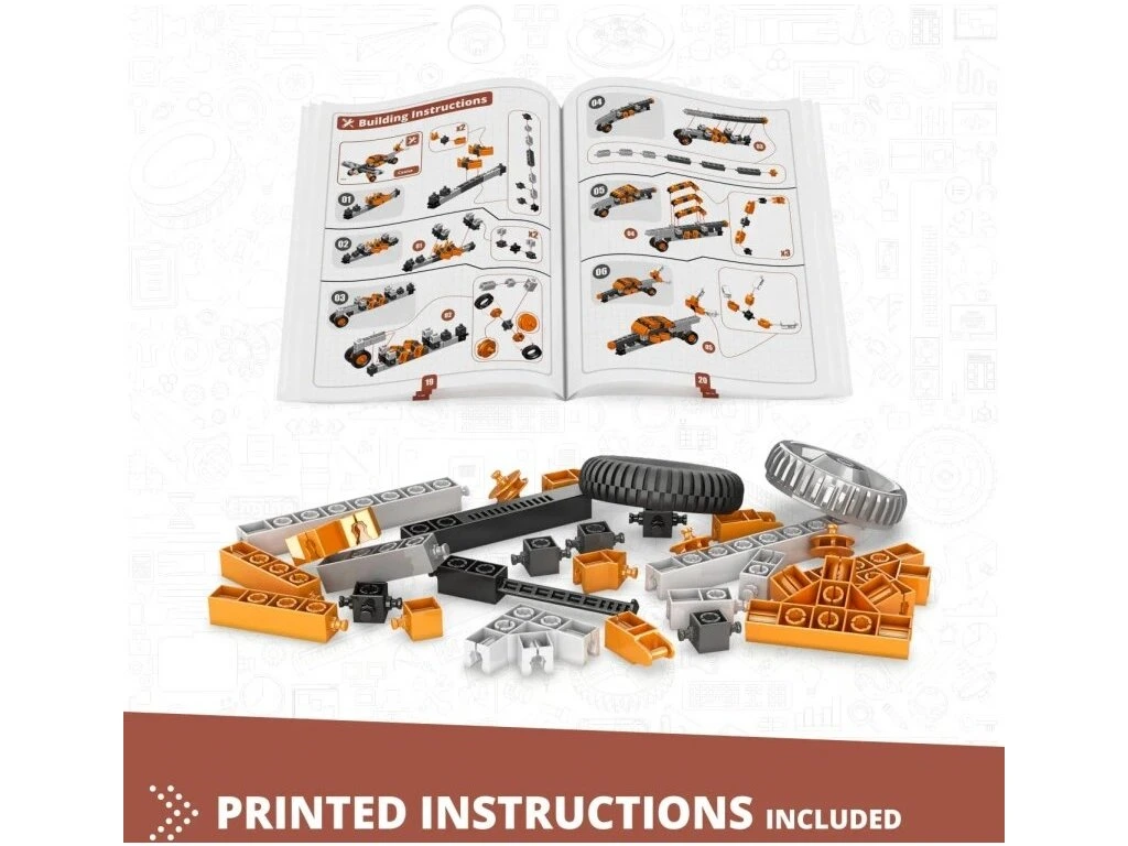 Tato souprava umožňuje dětem tvořit nejrůznější vozidla pomocí dřevěných tvarů a bio-plastových šroubků a matic.
