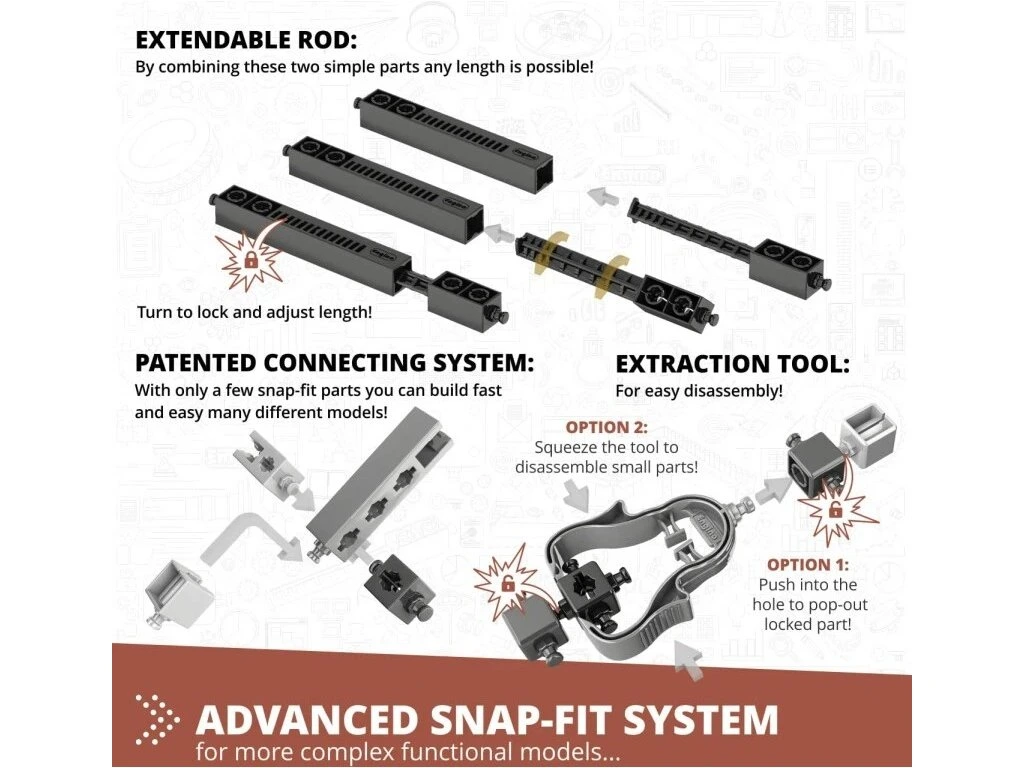 Georello Tech je vzdělávací stavebnice, která umožňuje dětem vytvářet vodorovné i svislé převodové soustavy na pevné základní desce.