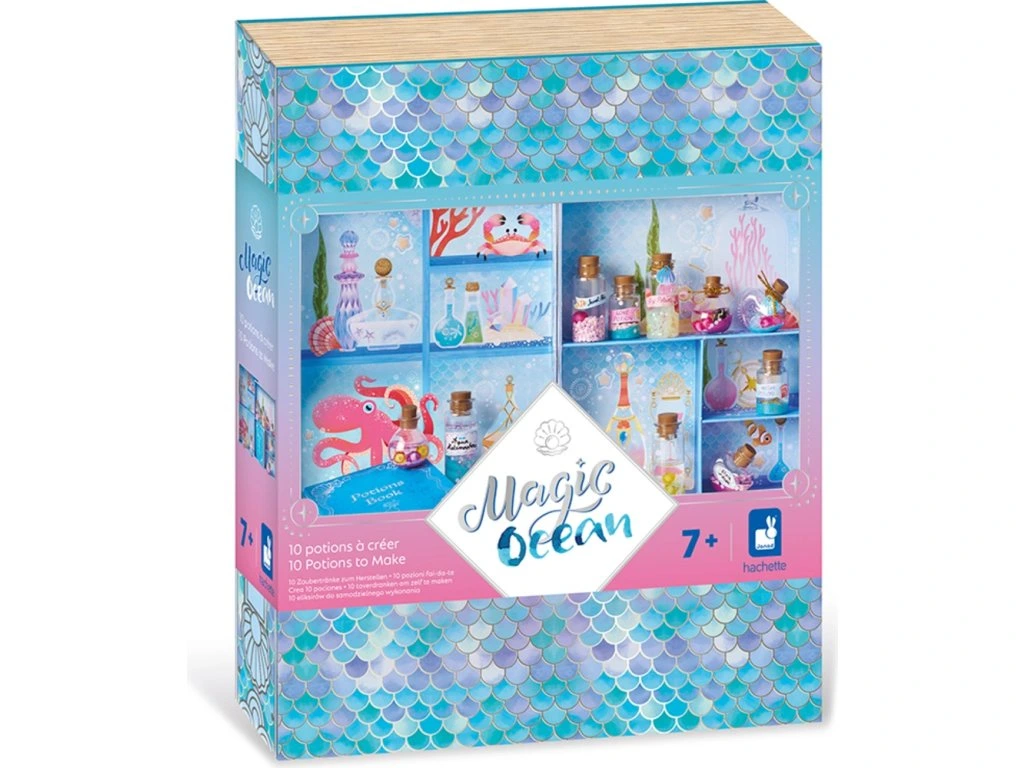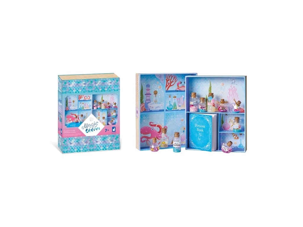 Kreativní sada – kouzelné elixíry podmořského světa!Špetka písku, špetka mušlí a dotek třpytek! Tato kreativní sada umožňuje dětem vyrobit si vlastní kouzelné elixíry v malých lahvičkách s použitím množství ingrediencí a knihy kouzel s magickými recepty. Aktivita rozvíjí kreativitu, trpělivost a jemnou motoriku. Jeden elixír se dá připravit přibližně za 5 minut a sada je vhodná pro děti od 7 let.