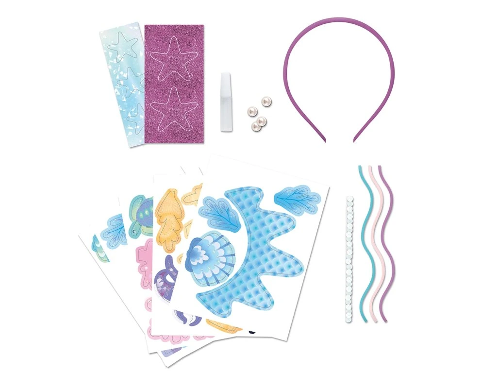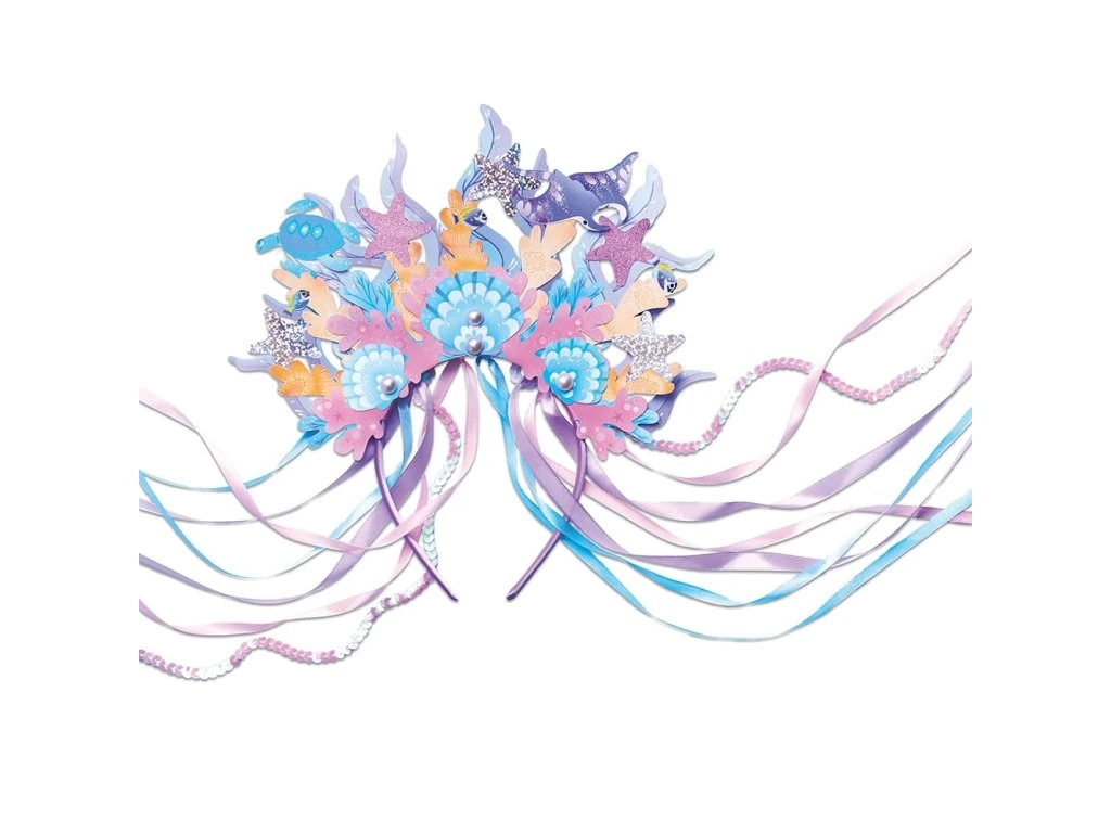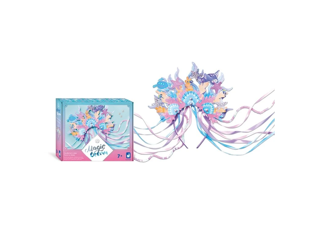 Kreativní sada – čelenka na téma oceán a mořské panny!Tato čelenka je dokonalým doplňkem každého maškarního kostýmu nebo příběhu o mořské panně. Kreativní sada umožňuje dětem vyrobit vlastní čelenku a rozvíjet při tom kreativitu a zručnost. Dokončení aktivity trvá přibližně 1,5 hodiny a je ideální pro děti od 7 let.