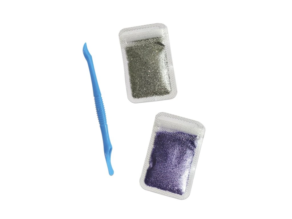 - 2 sáčky s třpytkami na zip (stříbrné a fialové)