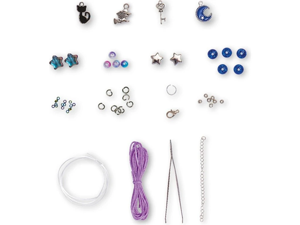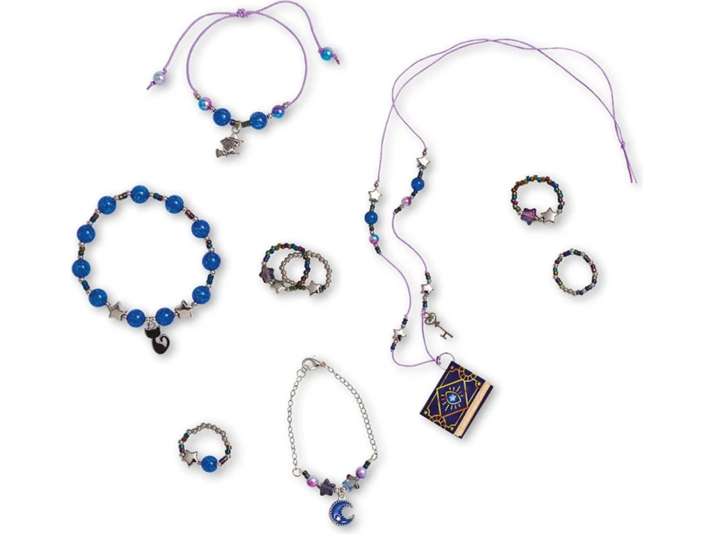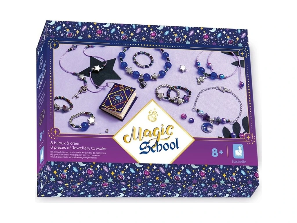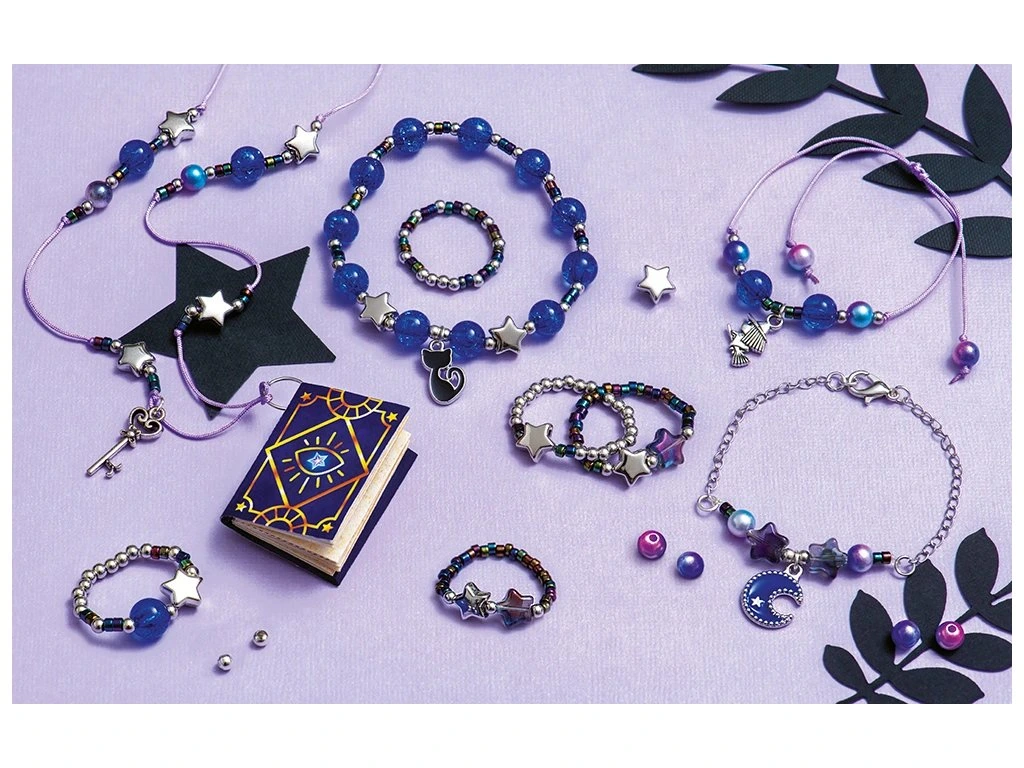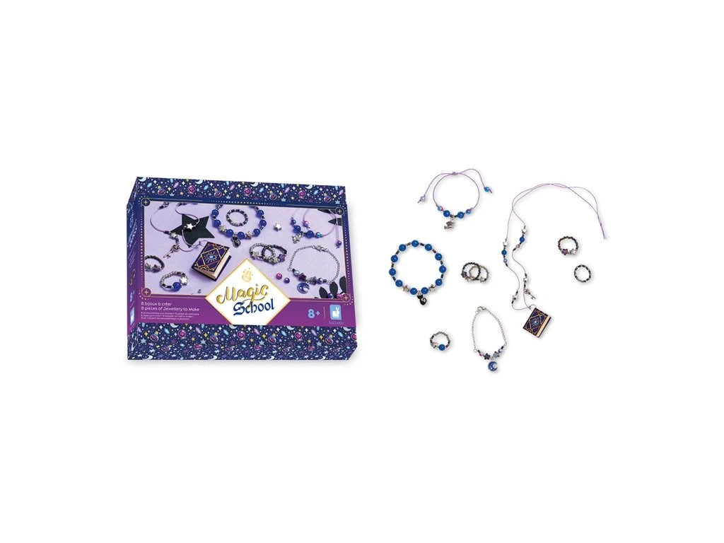 Vytvořte čarodějnické učednické šperky! S touto soupravou na výrobu šperků mohou děti od 8 let vyrobit 8 výtvorů na téma magie: 4 prsteny, 3 náramky a 1 náhrdelník. Tyto šperky se svým podmanivým šarmem a perleťovým efektem ponoří nejmenší do světa kouzel a záhad. Výrobou vlastních čarodějnických šperků děti rozvíjejí svou kreativitu i šikovnost.