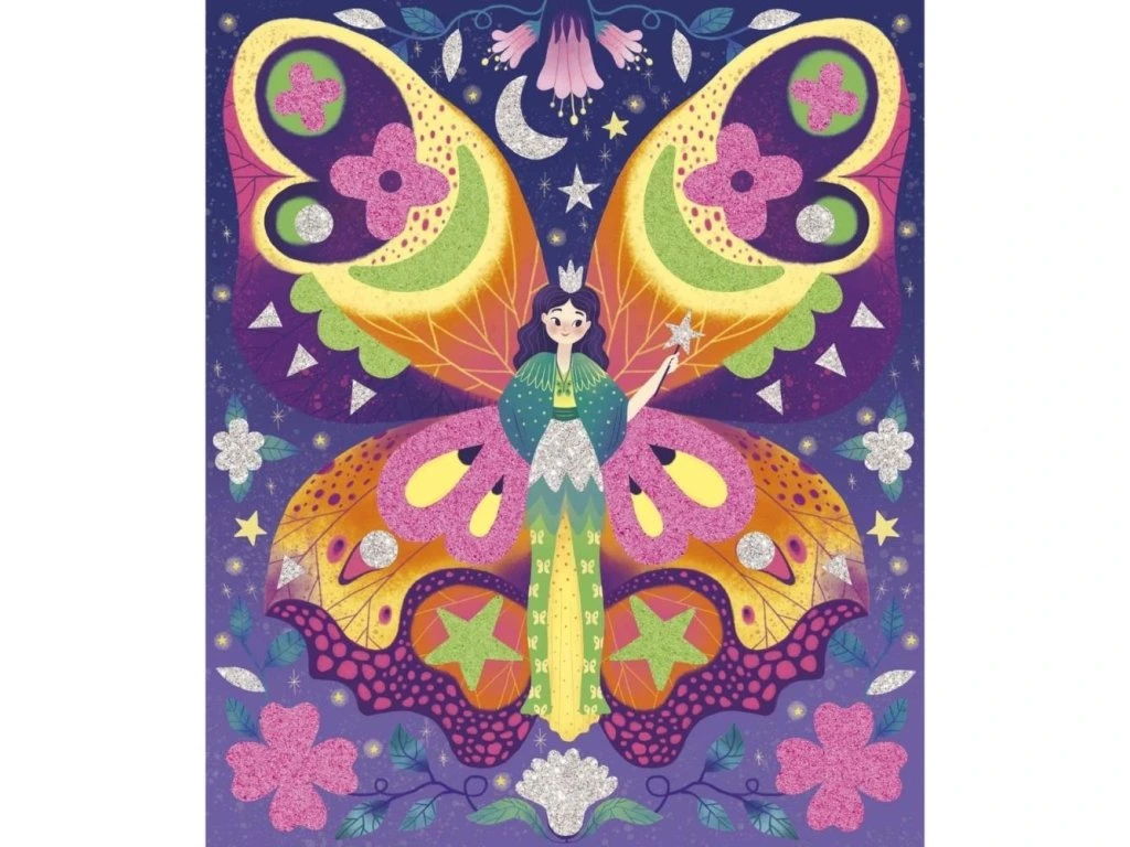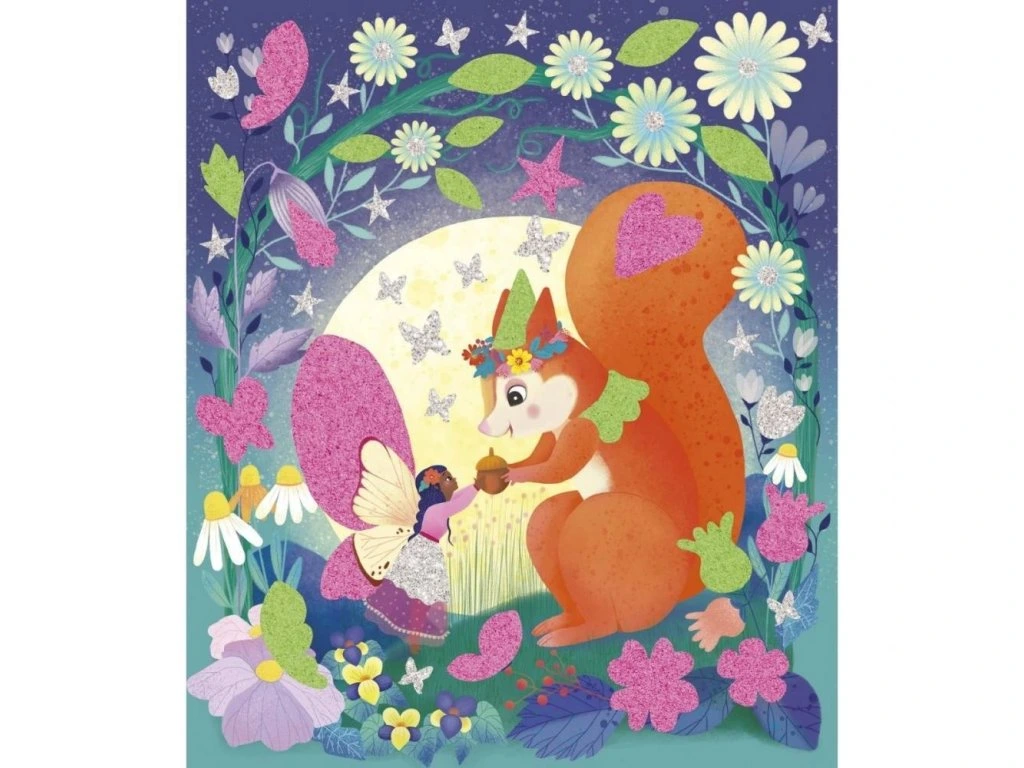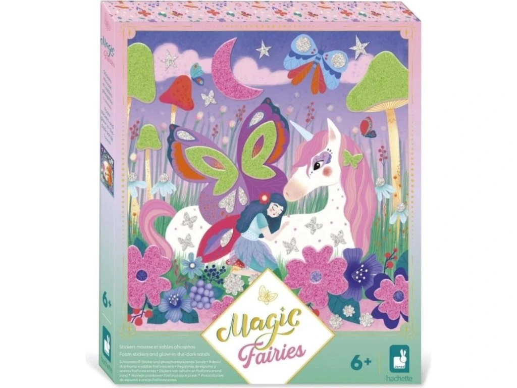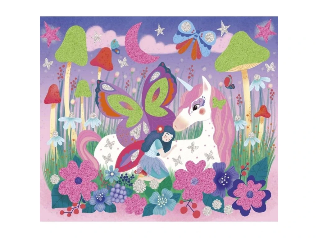 Vstupte do pohádkové krajiny s touto kreativní sadou! S nálepkami, třpytkami a pískem zářícím ve tmě je ideální pro děti od 6 let na rozvíjení trpělivosti, šikovnosti a vynalézavosti.
