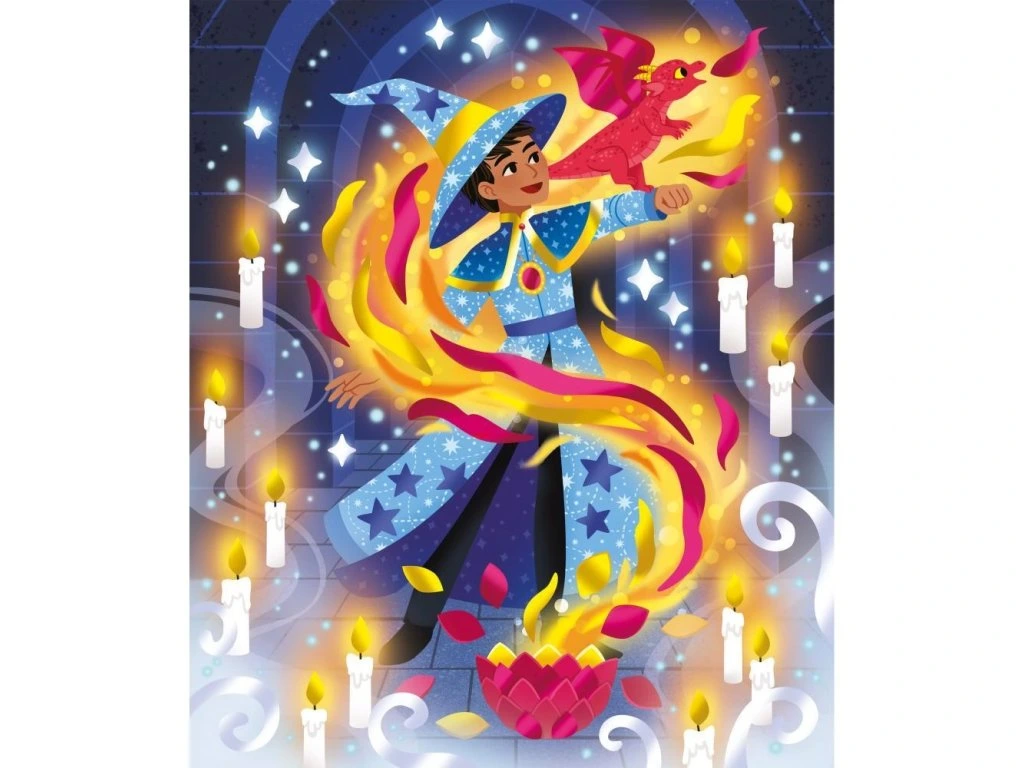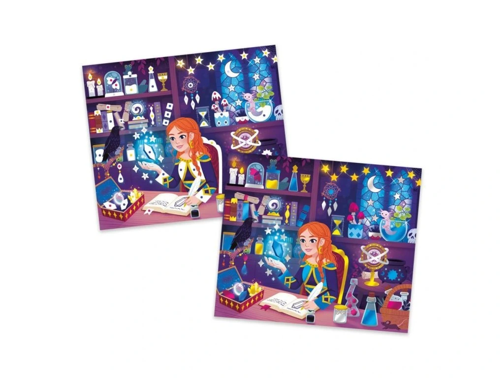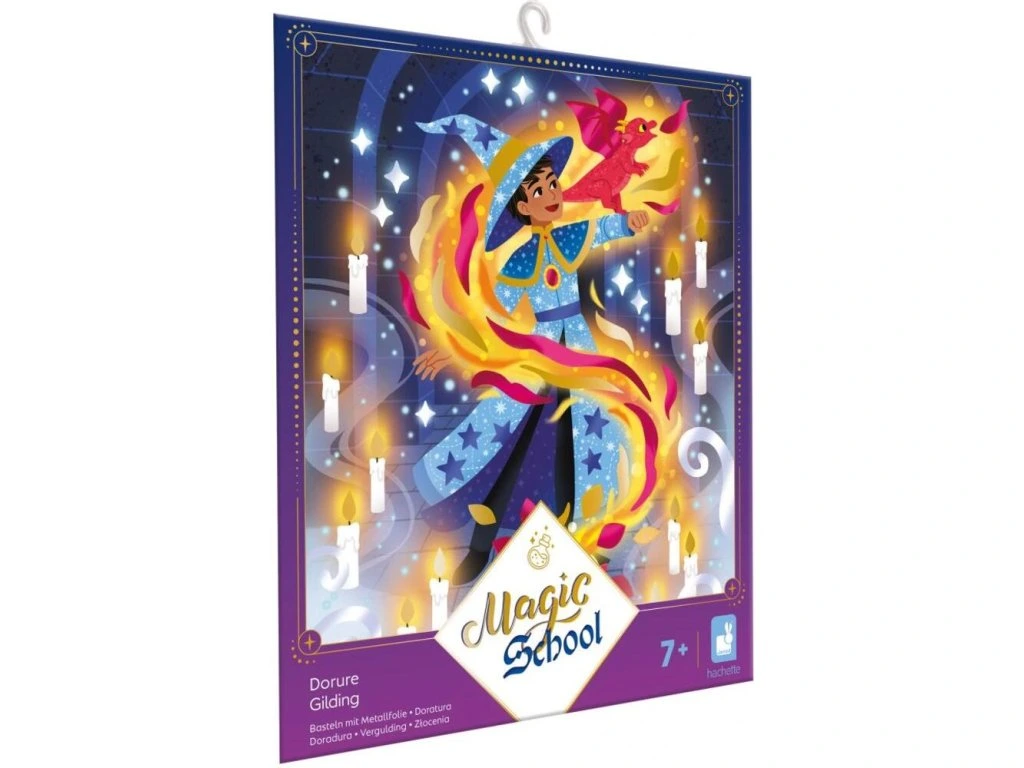 Abrakadabra, pozlacení se bude lesknout! S touto kreativní soupravou mohou děti ve věku 7 a více let vytvořit 3 obrazy zdobené zlacením na téma čarodějnice a kouzelníci. Tato tvůrčí činnost je ideální pro rozvíjení trpělivosti a preciznosti.