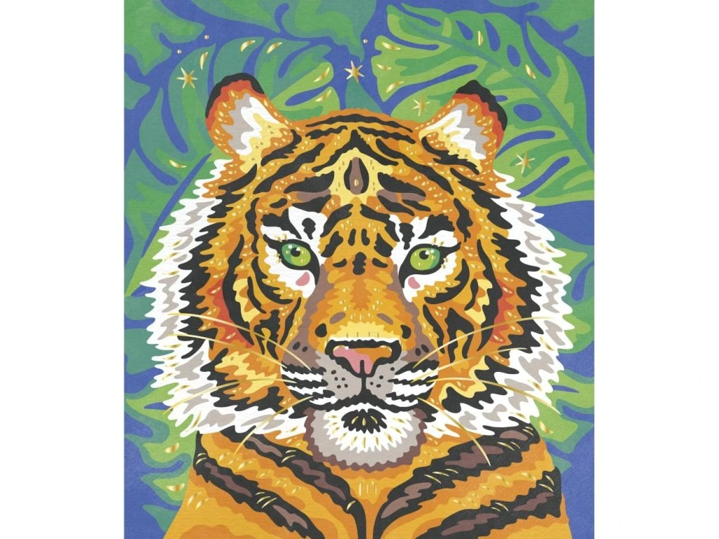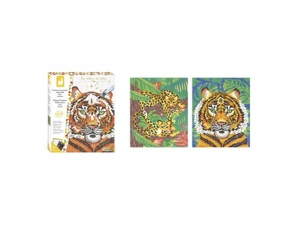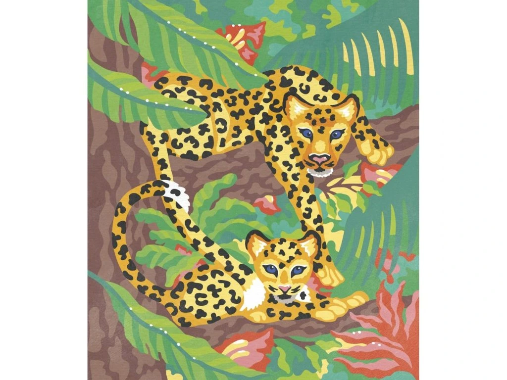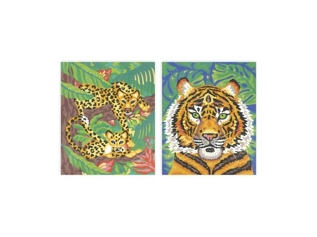 Tato vzrušující technika umožňuje dětem od 7 let vytvářet krásné malby jednoduše podle pokynů. Sada obsahuje 2 obrázky, na prvním je majestátní tygr a na druhém leopard s mládětem.