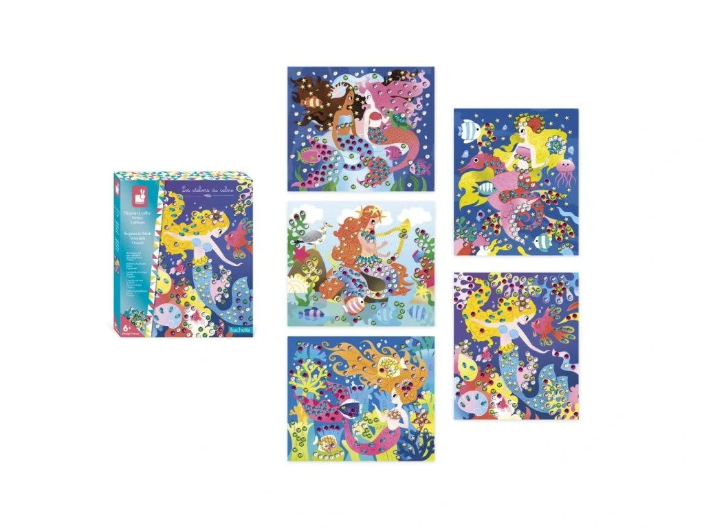 Obsah této kreativní sady zahrnuje 5 obrázků s motivem mořských panen na dotvoření a 800 flitrů různých barev. Tato kreativní sada od Janod je navržena tak, aby podporovala rozvoj tvořivosti, zručností a představivost u dětí. Kreativní hračky pro děti jsou praktické a mohou se využívat na cestách i doma, ve zdraví i během nemoci, a zaručeně zabaví děti na dlouhé hodiny. Tvorba různými technikami prostřednictvím této sady podporuje soustředění a koncentraci, přirozené objevování a rozvíjení výtvarných schopností.