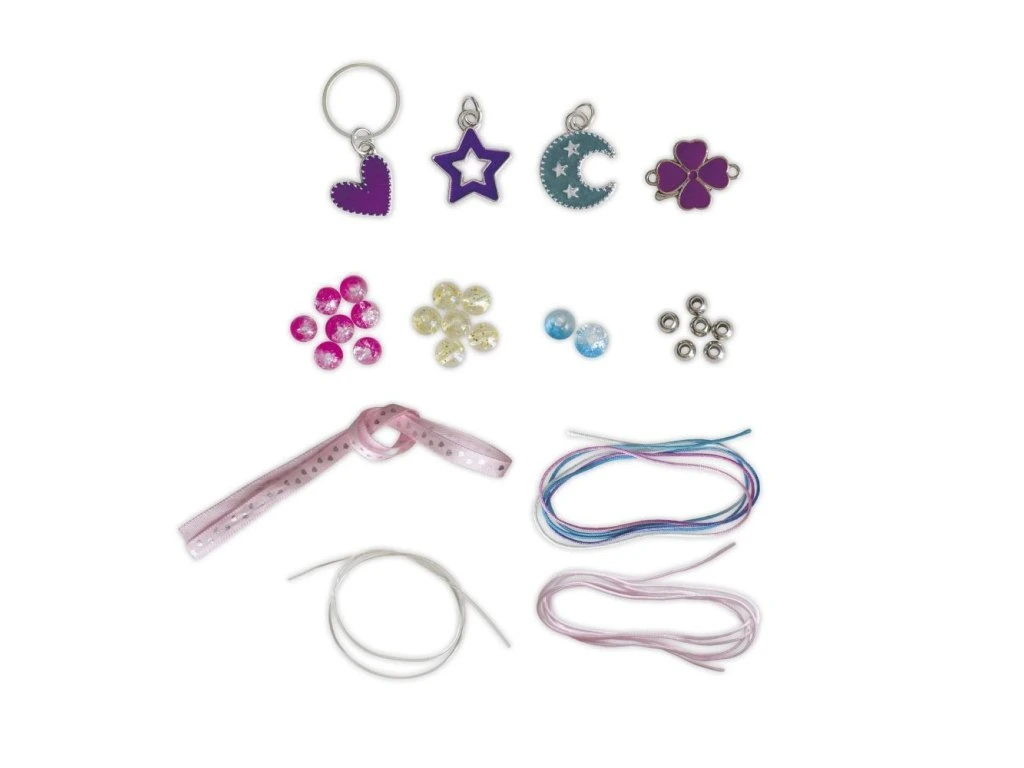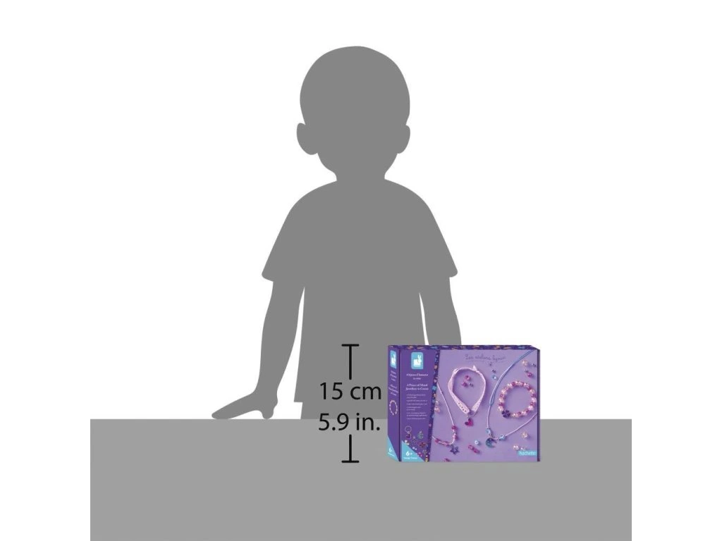Kreativní souprava: Výroba 7 kusů šperkůTato souprava umožňuje dětem vytvořit 7 šperků: 2 náramky, 1 náhrdelník, 1 pár náušnic a 3 prsteny.