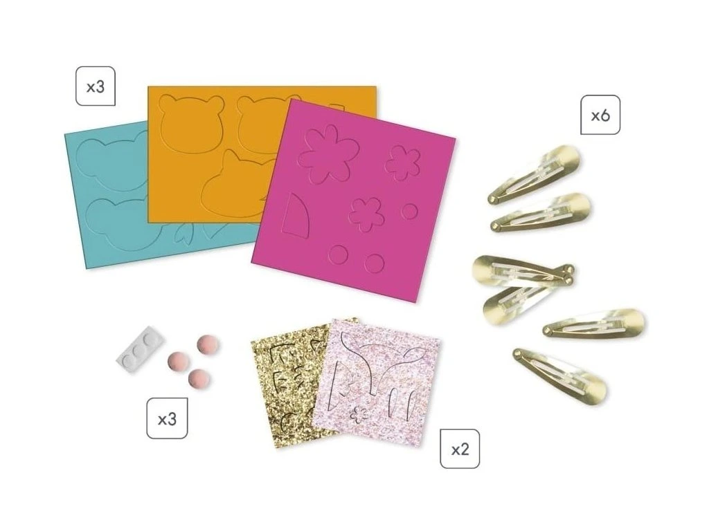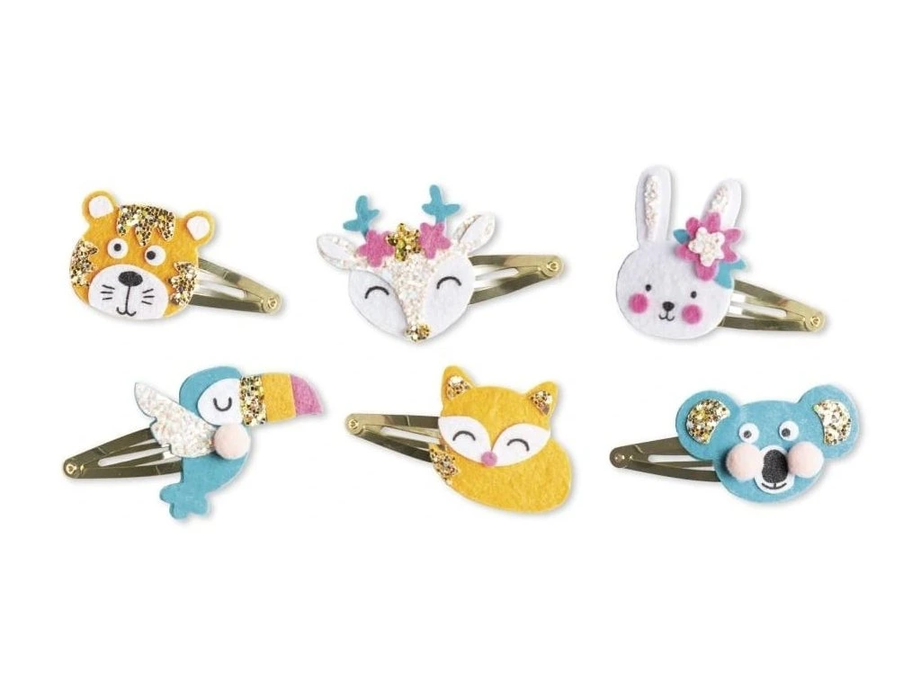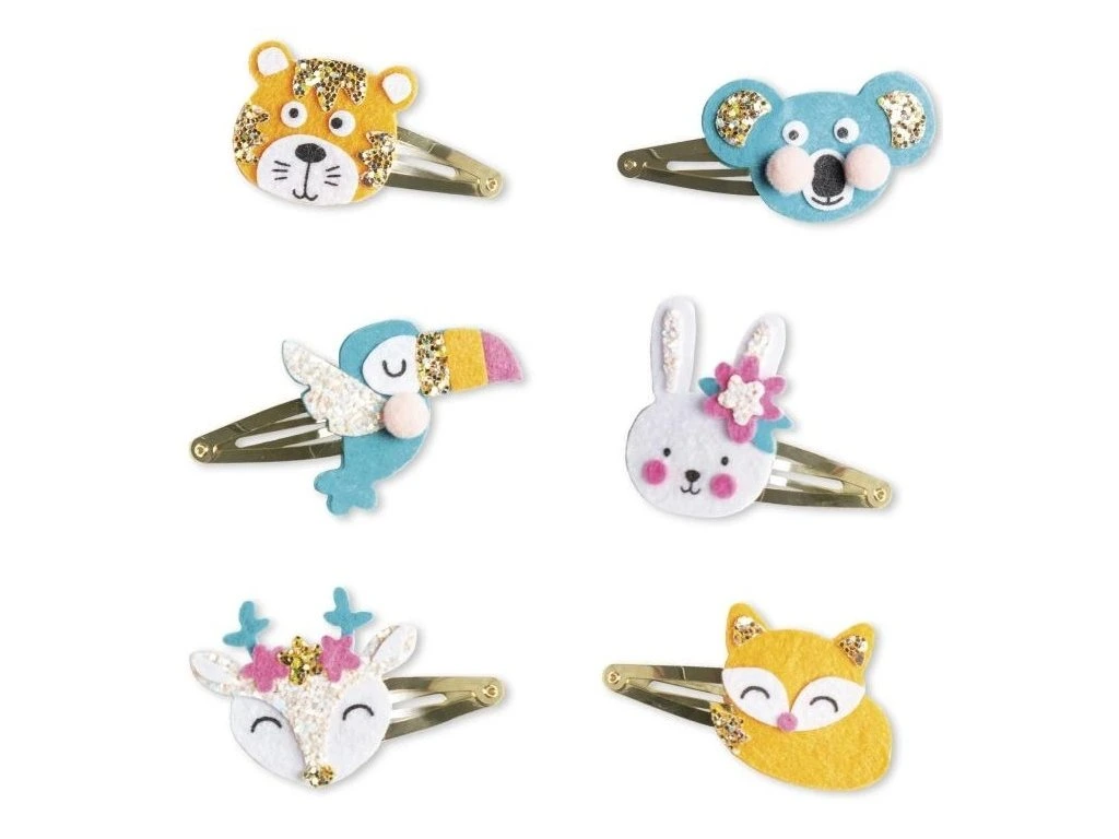 Dodejte svému účesu roztomilý nádech s touto kreativní sadou, která umožňuje dětem ve věku 6 let a starším vyrobit si 6 třpytivých sponek se zvířecí tematikou. Roztomilé, barevné a lesklé doplňky si vaše děti zamilují a budou hrdé na své vlastní výtvory!