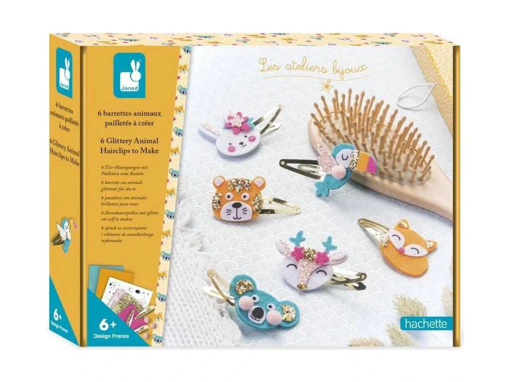 Kreativní souprava Janod – Třpytivé zvířecí sponky do vlasů