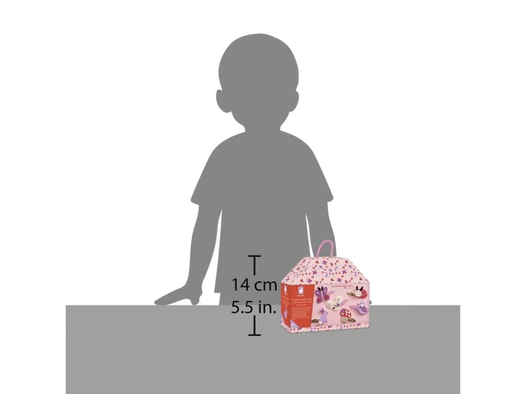 Květinová zahrada! S touto kreativní sadou si děti mohou vyrobit 6 třpytivých sponek do vlasů s motivem obyvatel zahrady: motýla, berušky, zajíčka, ptáčka, houbičky a myšky. Roztomilá potištěná krabička má ultra přenosný tvar kufříku, takže je ideální na cestování a pohodlné uložení všech dílků.