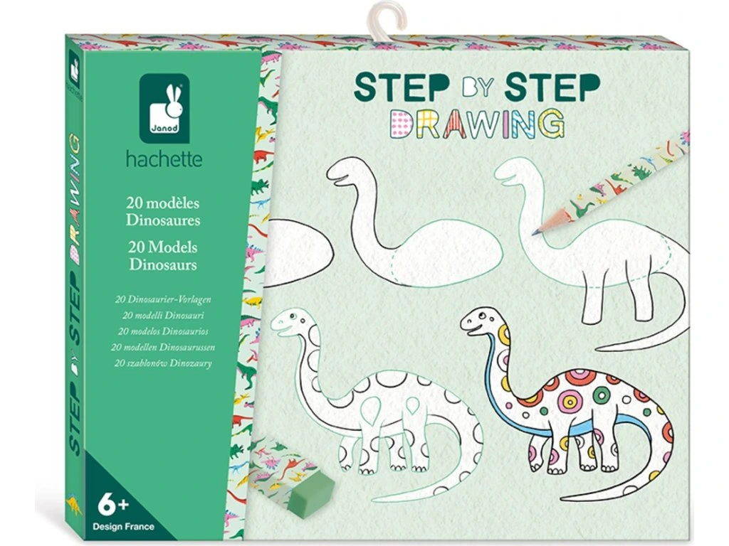 Kreativní sada Kreslení dinosaurů krok za krokem od francouzské značky JANOD umožňuje dětem naučit se kreslit různé druhy dinosaurů jednoduchým a zábavným způsobem. Pomocí předloh si děti postupně osvojí základní techniky kreslení a vytvoří vlastní obrázky plné fantazie.