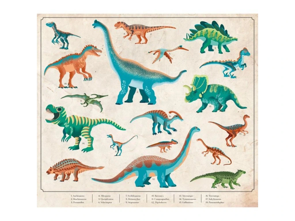 - 1 leták s návodem, šablonami a informacemi o dinosaurech