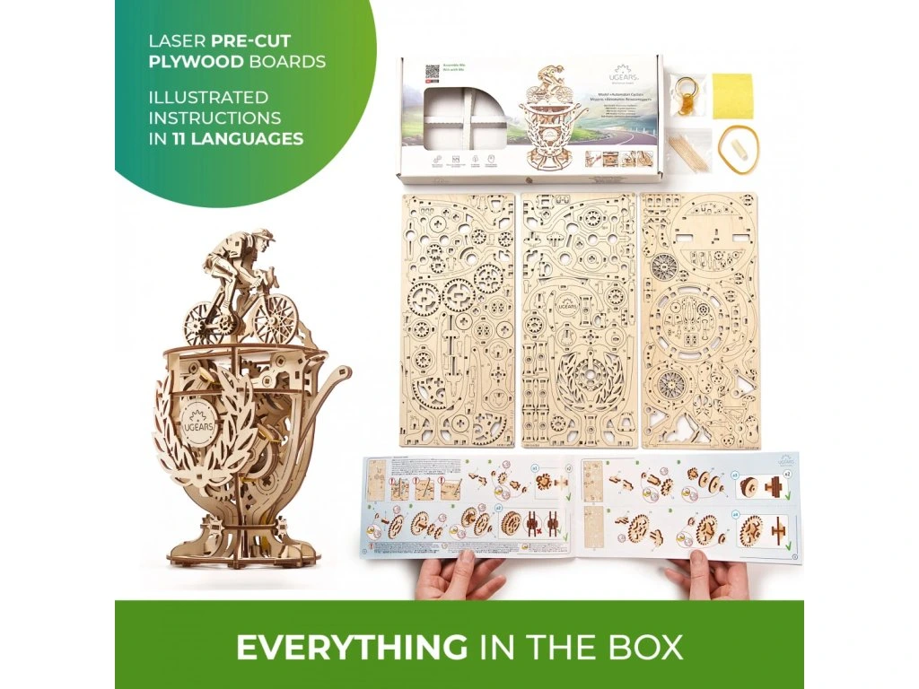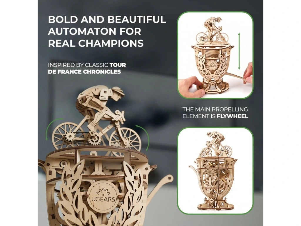 Automaton od Ugears, odvážný a nádherný 3D puzzle pro skutečné šampiony, se k nám řítí, aby nás dovedl k novým vítězstvím. Představujeme vám náš nejnovější přírůstek do rodiny automatonů Ugears, Cyklistu.