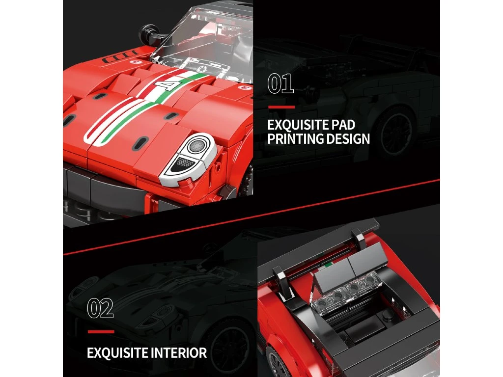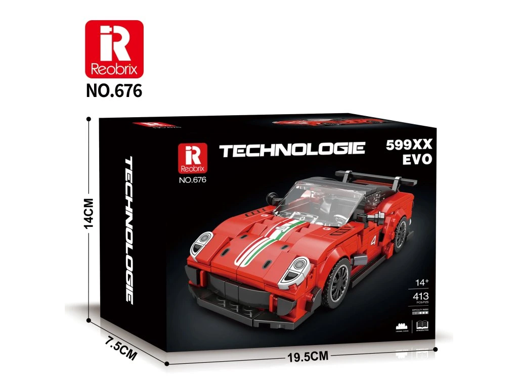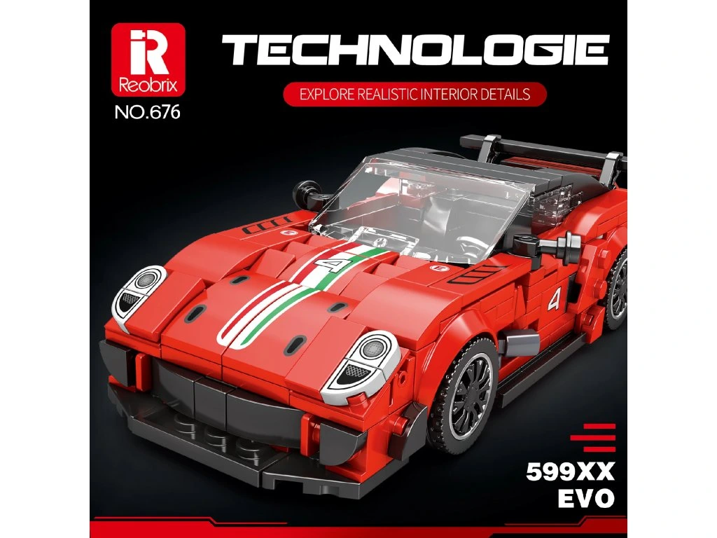 Postavte si vlastní miniaturu ikonického závodního supersportu! Reobrix 599XX EVO je detailní model inspirovaný extrémní verzí vozidla Ferrari 599 (bez licence), který spojuje agresivní aerodynamické linie s čistou závodní estetikou.
