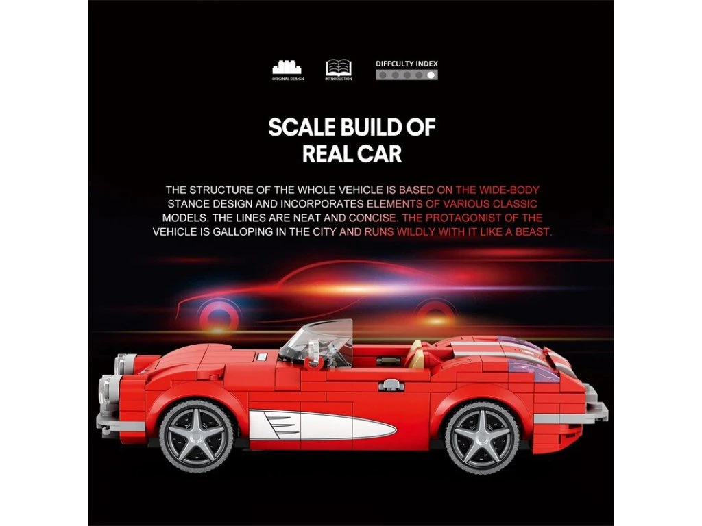 Corvette skvěle doplní další sportovní modely ze série Reobrix Technologie – vytvořte si vlastní kolekci amerických legend.