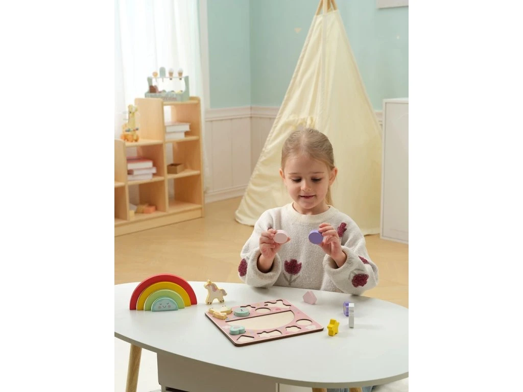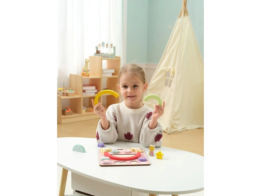 Tato balančná hra v příjemných pastelových barvách a vkládací puzzle 2 v 1 je nejen zábavná, ale zároveň rozvíjí jemnou motoriku dětí, koordinaci ruka–oko, trpělivost a představivost.