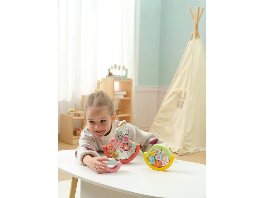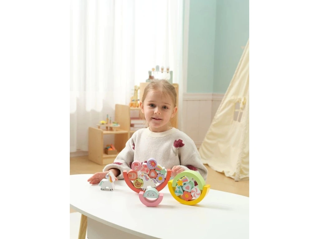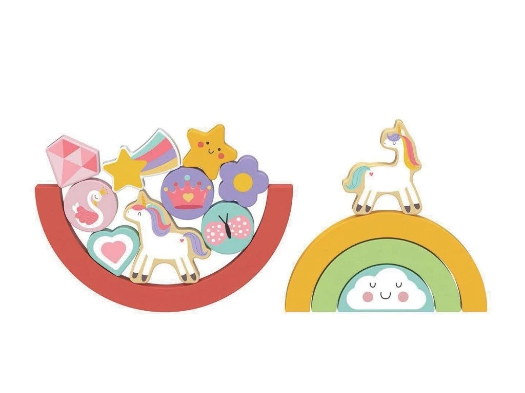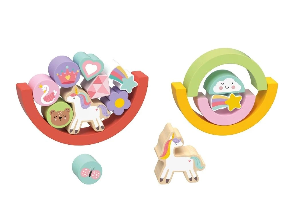 21-dílná balanční hra v designu Unicorn je všestranná dřevěná hračka s nekonečnými možnostmi hraní.