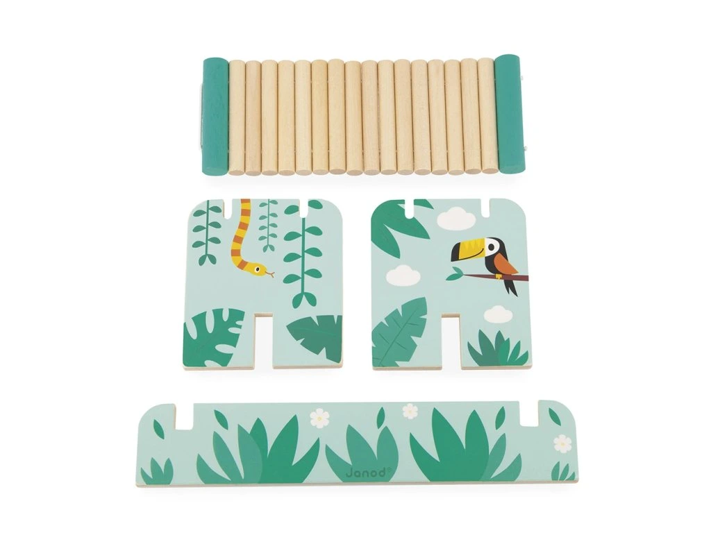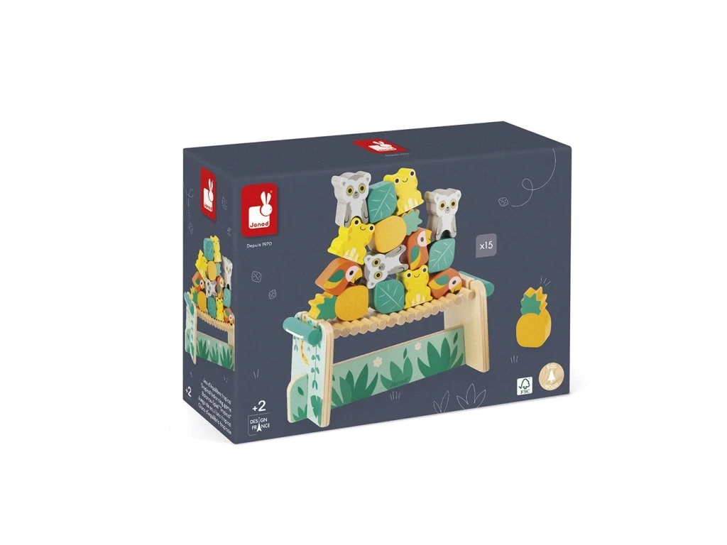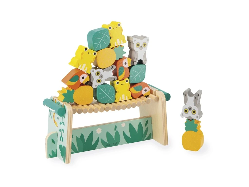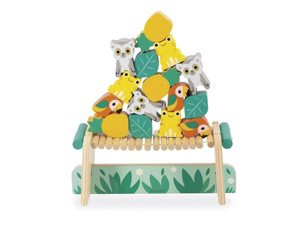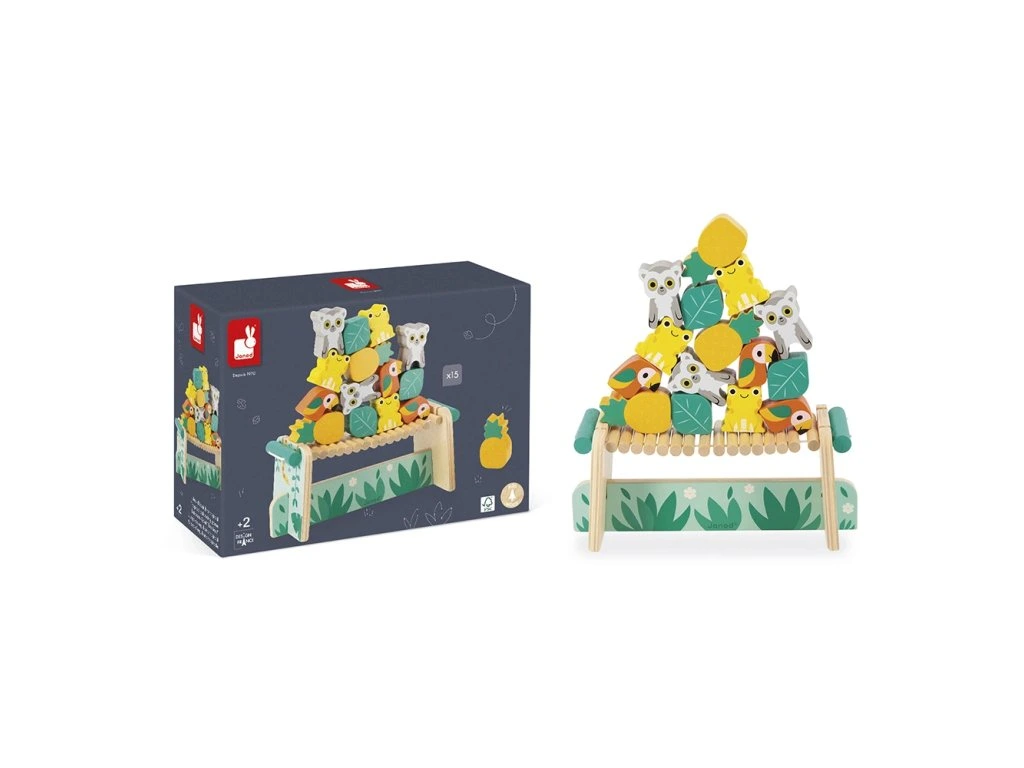 Je tu otázka rovnováhy na opičím mostě! Vaše dítě bude muset ukázat šikovnou mysl a jemný cit v rukou, aby umístilo všech 15 dřevěných dílků na most bez toho, aby se převrátil. Tato šikovná hra poskytuje hodiny rodinné zábavy! Je ideální na rozvoj rovnováhy a koordinace oko-ruka.Na vytvoření kolekce Tropik, jsme se myšlenkami vydali pro inspiraci do tropů, a našli jsme tam pestrobarevnou a exotickou flóru a faunu, která má neuvěřitelnou atmosféru pro naše designéry. Abychom co nejlépe ilustrovali tuto divokou přírodu, spojili jsme veselá zvířátka v zářivých barvách a rostlinné prvky v uklidňujících odstínech.