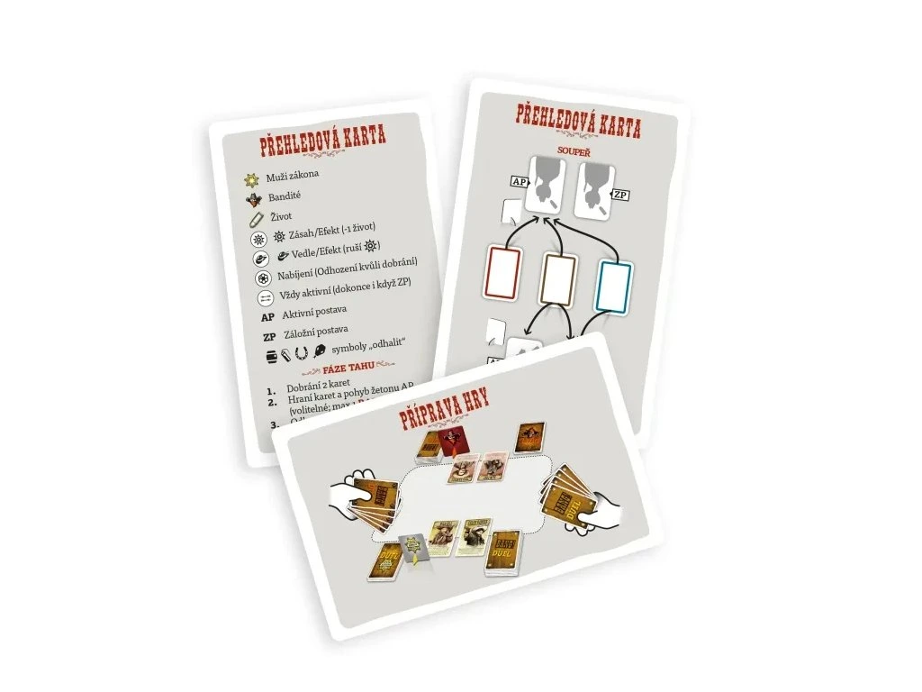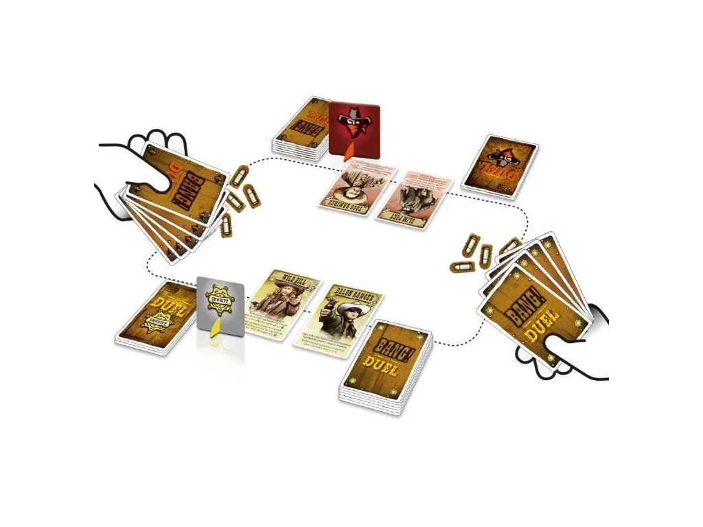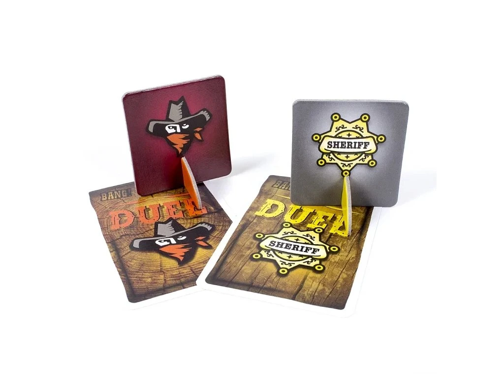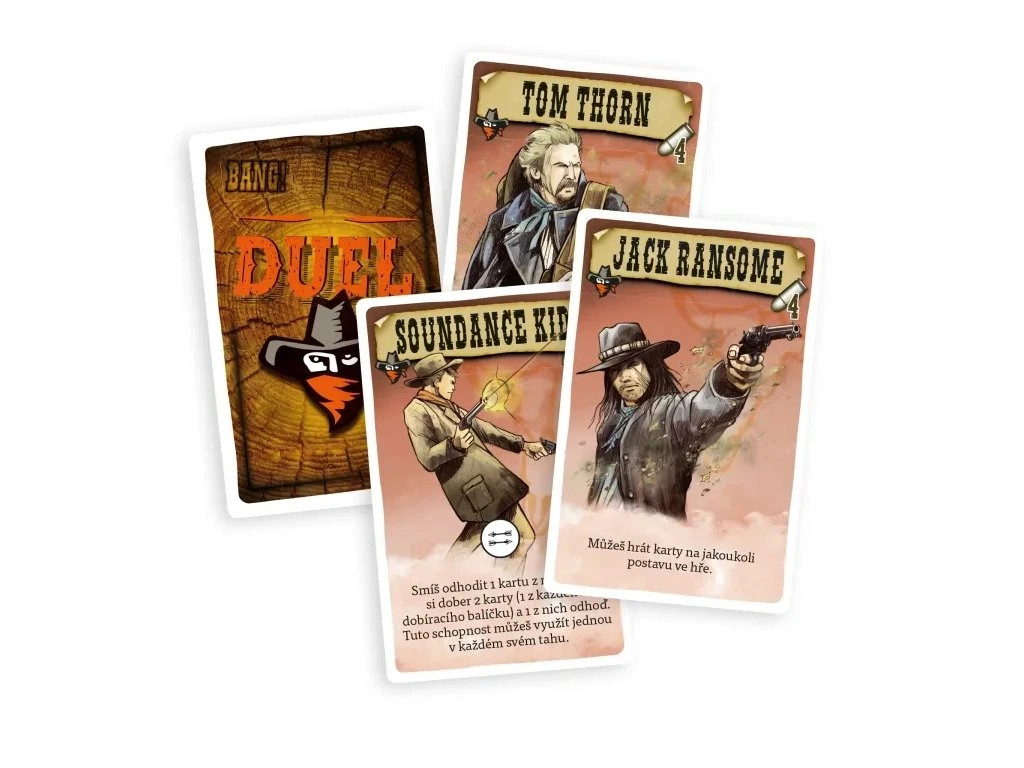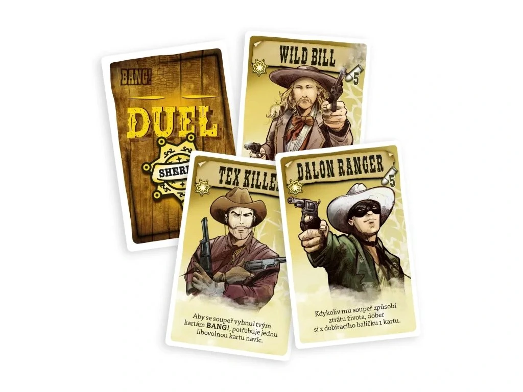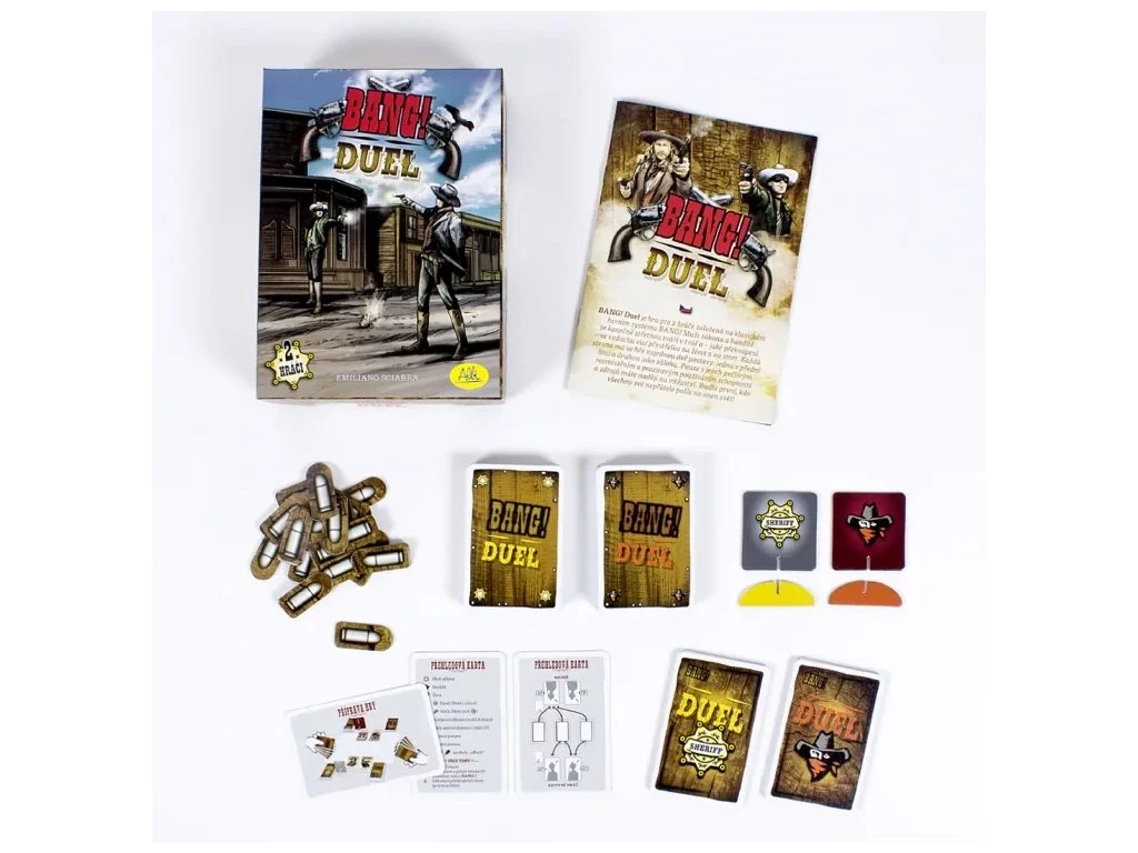 Rozmístěte své pistolníky, udělujte jim rozkazy a veďte je k vítězství. Bang! Duel je samostatná hra, ke které nepotřebujete základní verzi Bang! Hráči si rozdělí strany – muži zákona proti banditům. Kdo nakonec zůstane stát?