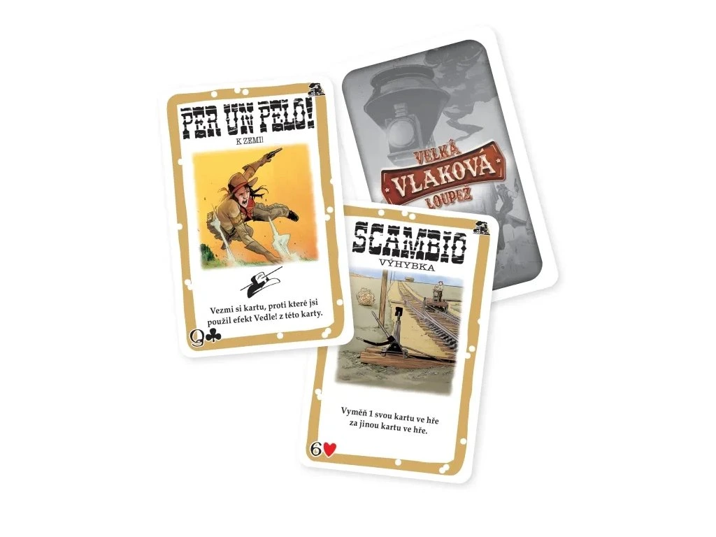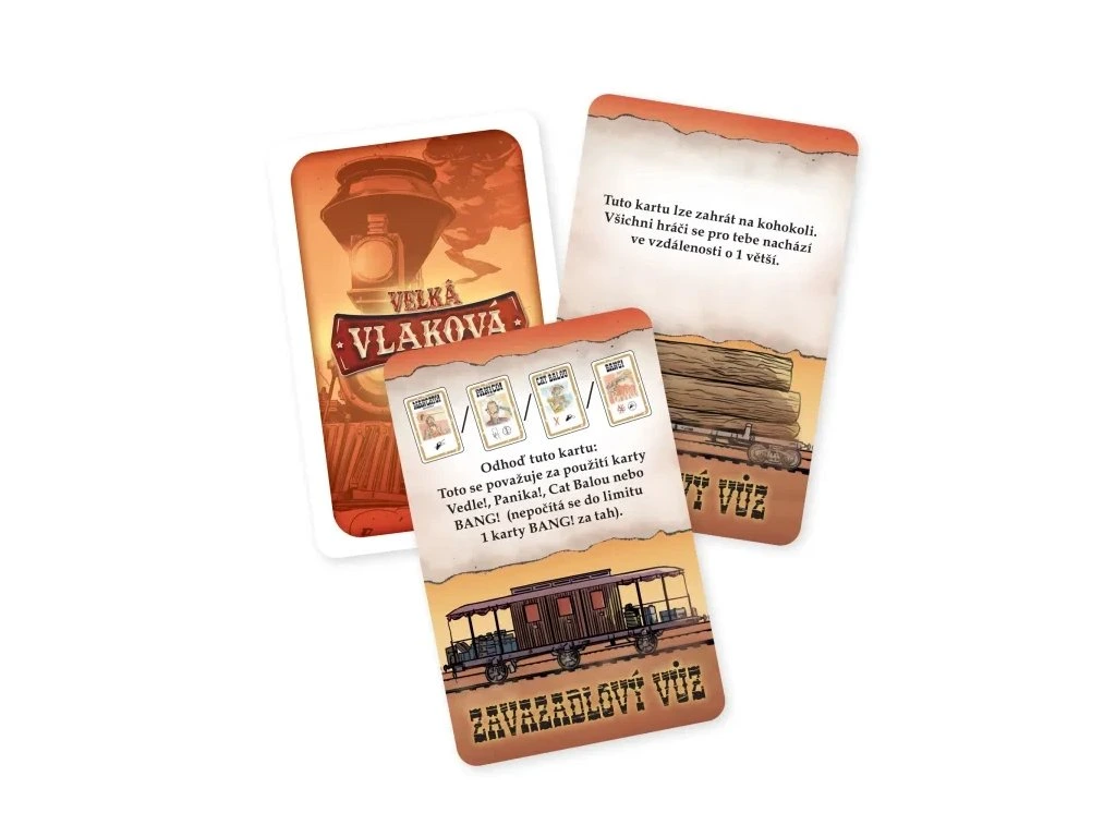 Bang! Velká vlaková loupež je rozšíření, které vzniklo na základě návrhů českých a slovenských hráčů a přidává ke hře nový herní prvek – vlak, který přináší unikátní možnosti a taktické výhody. V balení najdete i nové postavy a karty, které obohacují každou partii.