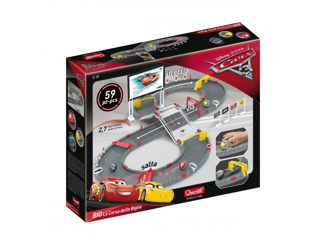 Postav si vlastní závodní dráhu a vydej se na vzrušující jízdu s oblíbenými hrdiny z Disney filmu Cars!S kuličkovou dráhou Quercetti Big Cars 3 si děti užijí dynamickou zábavu a soutěžení, přičemž si rozvíjejí logické myšlení, trpělivost a koordinaci.