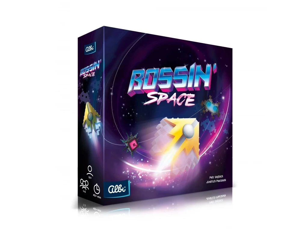 Bossin' Space je kooperativní hra pro jedného nebo čtyři hráče. Čeká vás v ní putování napříč vesmírem do neznáma a bojování s mimozemskými nepřáteli. Jste průzkumníci, kteří se ocitli pod těžkou palbou. Vaše plavidlo Hvězdný hrot sice nemá armádní výbavu, ale bezbranní nebudete. Vylepšujte svou loď, přelstěte nepřátele a zůstaňte naživu.OBSAH PRODUKTU: herní plán deska vylepšení 13 kartonových žetonů 5 kartonových figurek Bossů 162 karet 11 plastových kostek 1 plastová figurka sešit pravidel pomocný list Parametry produktu: Rozměry krabice: 24 cm x 24 cm x 5 cm