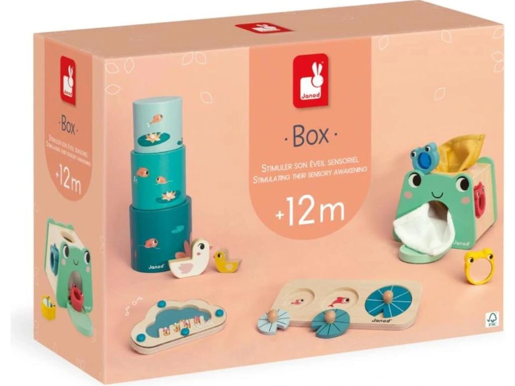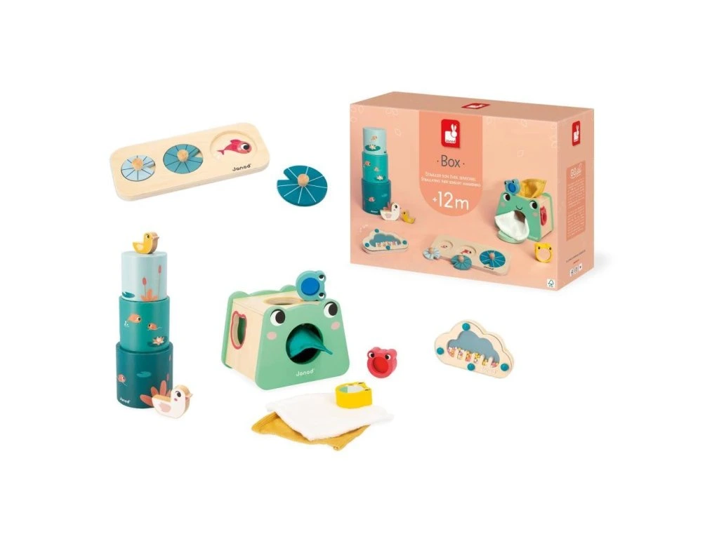 Dobrodružství čekají na všechny děti s edukačním Janod boxem! Kompletní balení obsahuje 4 hračky navržené s ohledem na první rané učení dětí. Vyvinuté ve spolupráci s odborníkem, podporují psychomotorický vývoj a rozvoj dovedností.