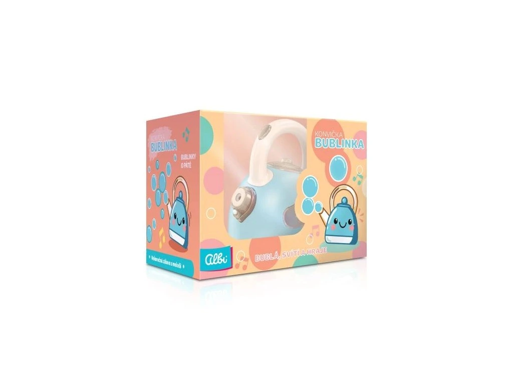 Bublifuková konvička funguje na 3× 1,5 V AA baterie. Po zapnutí začne blikat, ozve se bublající zvuk a následně zazní veselá melodie. O pár sekund se z hrdla konvičky rozletí bubliny, které potěší každé dítě.