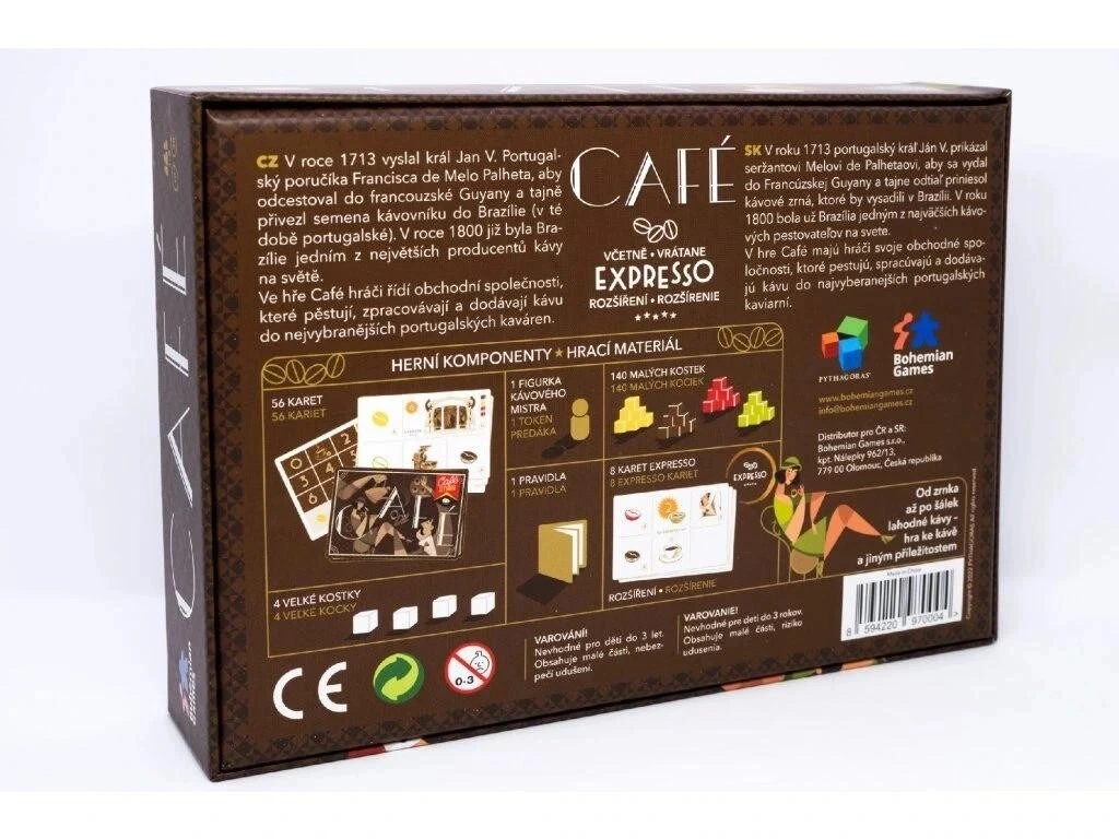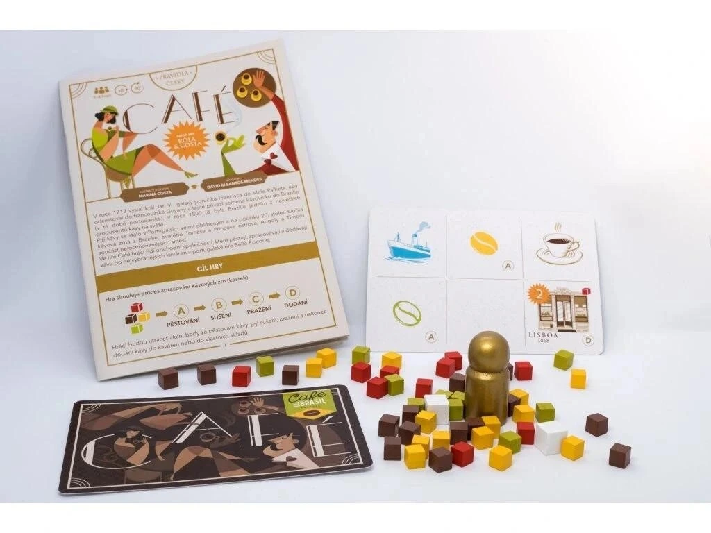 Ve hře Café hráči řídí obchodní společnosti, které pěstují, zpracovávají a dodávají kávu do nejvybranějších kaváren v portugalském období Belle Époque. Součástí hry je i rozšíření Expresso.