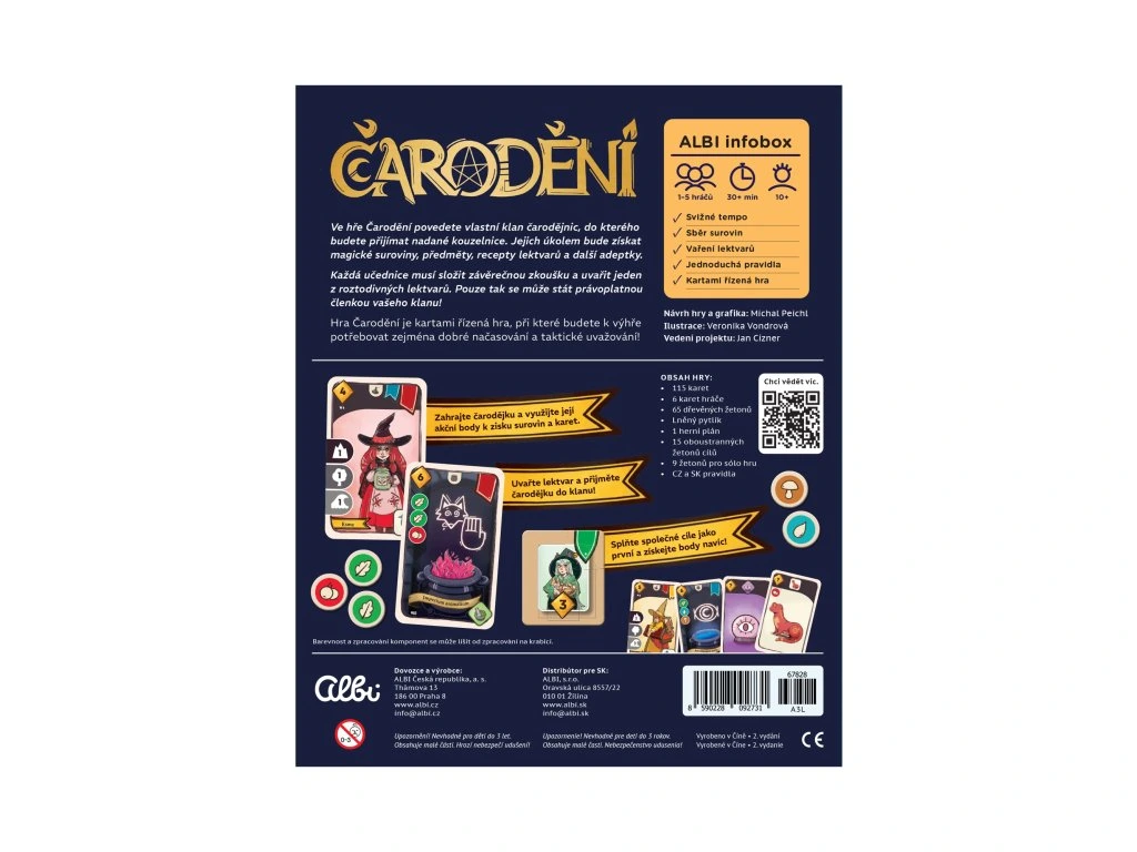 Ponořte se do světa magie! V rodinné hře Čarodění povedete vlastní klan čarodějnic a přijímáte nadané kouzelníčky. Získávejte magické suroviny, předměty, recepty lektvarů a rozšiřujte svůj klan!