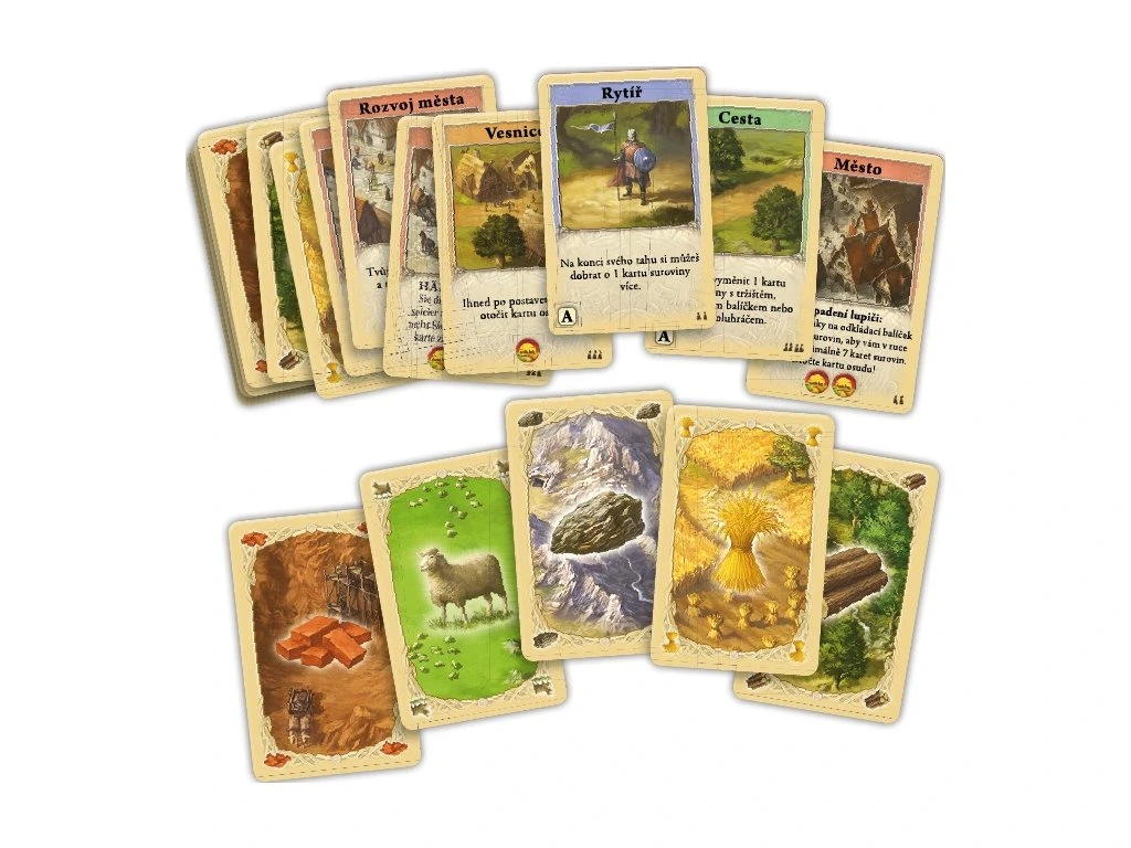 Na Katanu se nikdy nestavělo tak rychle jako teraz. Vesnice rostou jako houby po dešti a každou chvíli vznikne nové město. Kdo si nepohne, může na ovládnutí Katanu zapomenout! V této hře jde o to, abyste co nejlépe využili Vaše suroviny a získali co nejvíce vítězných bodů. Je potřeba postavit cesty, nasadit rytíře do boje, založit vesnice a města a ty dále rozvíjet. I když znáte velké Osadníky z Katanu, tato hra Vás bude také bavit. Sice je mnohem zjednodušená, ale je svižná a dobře promyšlená. A pozor, když dáte dohromady 2 tyto hry, můžete Osadníky hrát i 6 hráči.Hra obsahuje: 110 karet: 67 surovin, 42 stavebních karet (včetně rytíře, rozvoje města, přehledových karet), 1 kartu osudu, pravidla v českém a slovenském jazyce.