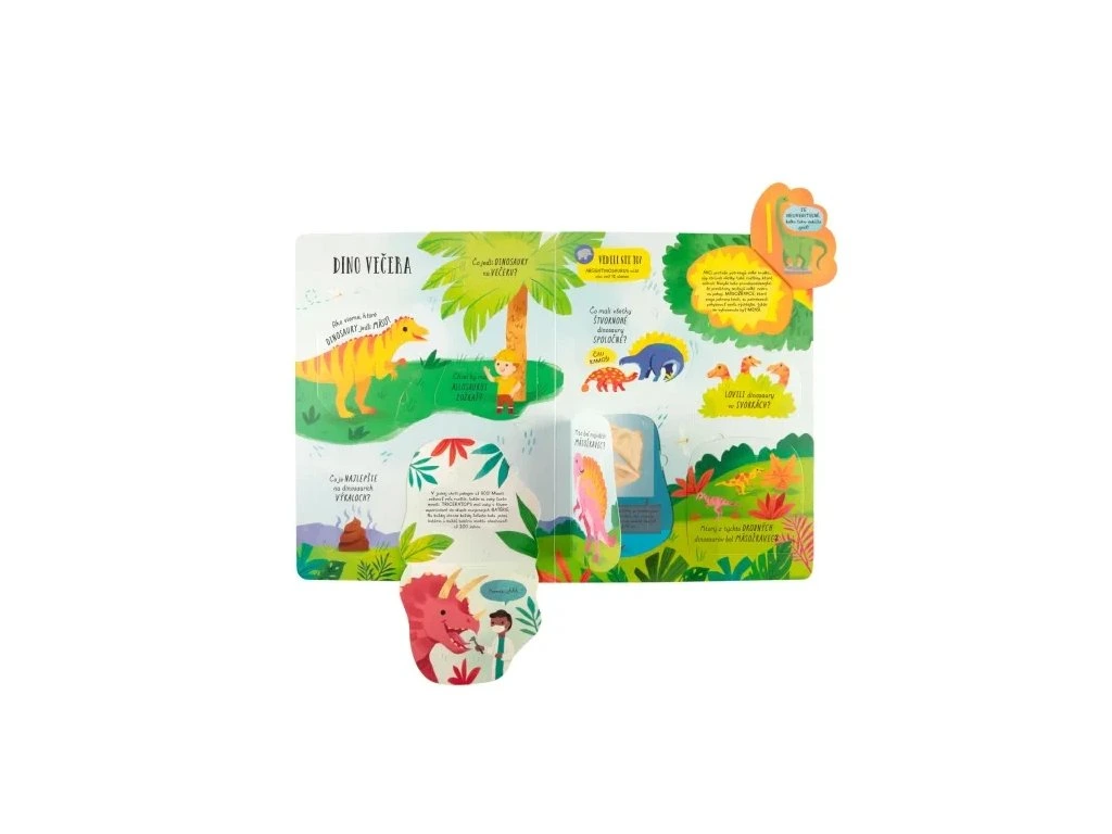 Krásně ilustrovaná dětská kniha zavede malé čtenáře do fascinujícího světa dinosaurů a pravěkých tvorů. Obsahuje více než 60 otevíracích okének plných zajímavostí o životě, chování a prostředí těchto dávných obrů.
