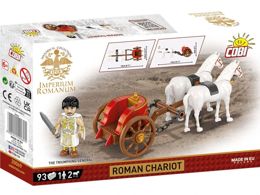 Model umožňuje vytvářet různé historické scénky. Postavte za voz římské legionáře ze sad s figurkami, aby mohl velitel vést svou armádu do vítězného průvodu. Myslíte si, že na triumf je ještě brzy? Zkombinujte voz se sadou gladiátorů a vytvořte napínavou bojovou scénu.