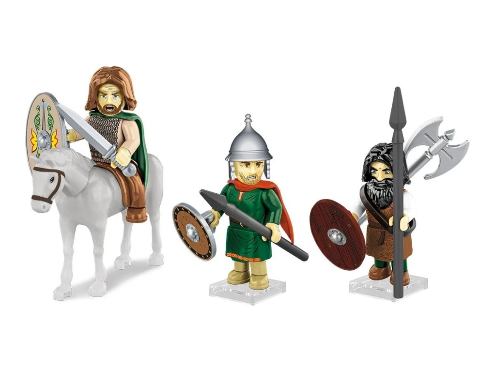 Sada obsahuje tři detailně zpracované figurky germánských bojovníků připravených na překvapivé útoky, frontální boje nebo odvážné nájezdy proti římským légiím. Figurky jsou vybaveny autentickými zbraněmi a štíty s jedinečným designem, inspirovaným historickými artefakty.