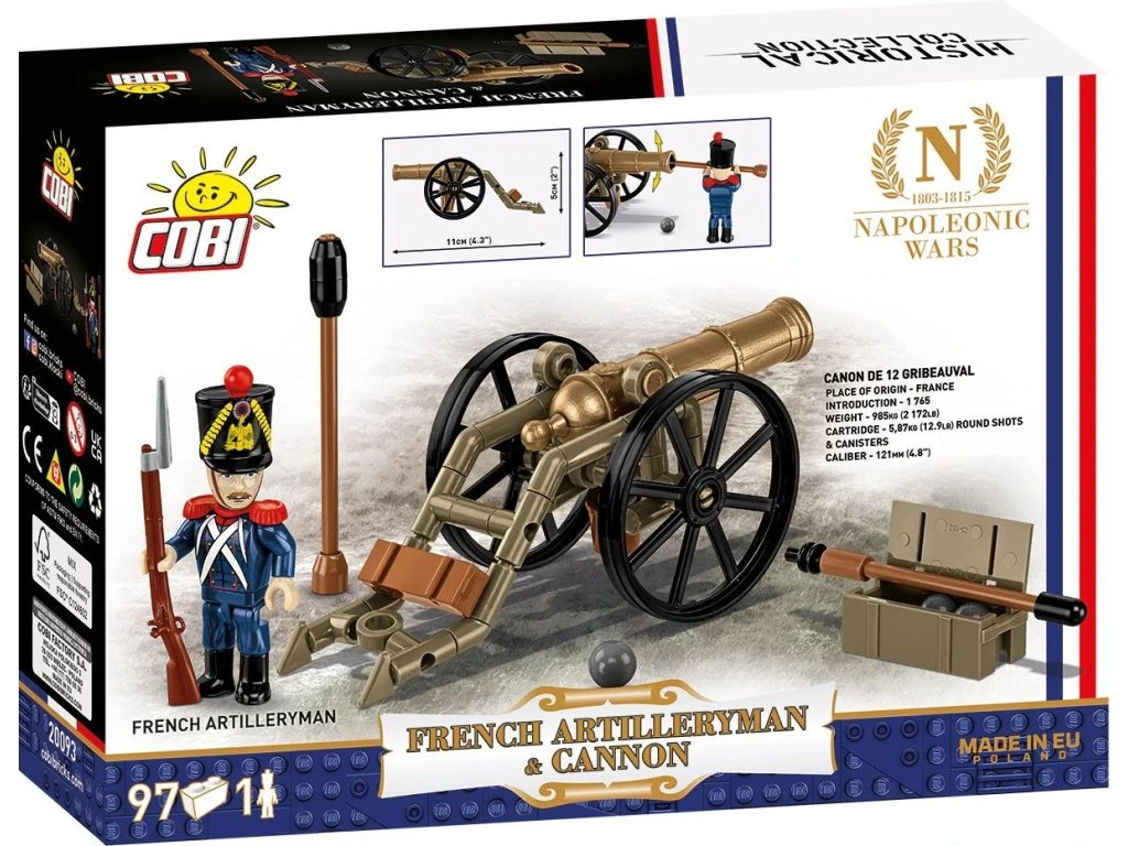 Napoleon řekl, že „dělostřelectvo je duší armády". Byly to kanóny, které vydláždily cestu k vítězstvím a rozsévaly chaos v řadách nepřítele. Model COBI věrně reprodukuje proporce, detaily a charakteristické prvky systému Gribeauval: od masivní lité hlavně až po realistické lafetování s možností manévrování.