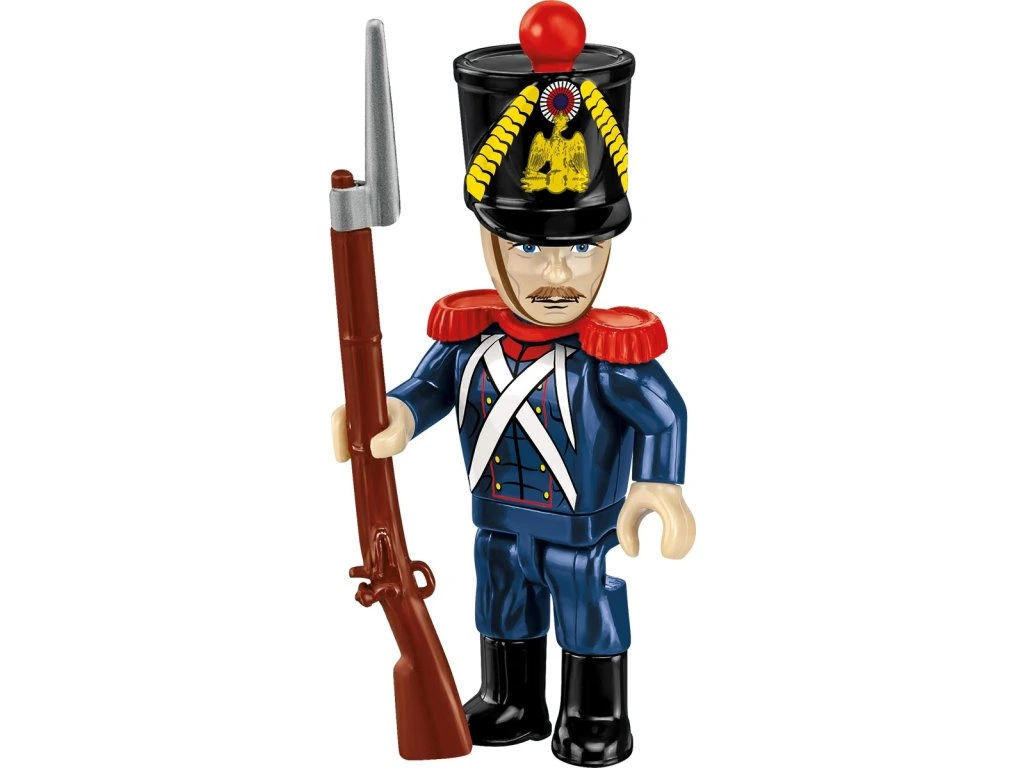 - Figurka dělostřelce – v tmavomodré uniformě s červenými detaily, čepicí zdobenou střapcem a s puškou s bodákem.