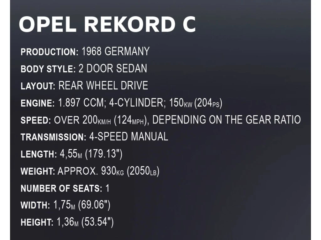 Cobi 24333 Opel Rekord C Schwarze Witwe, 1:12, 2078 k