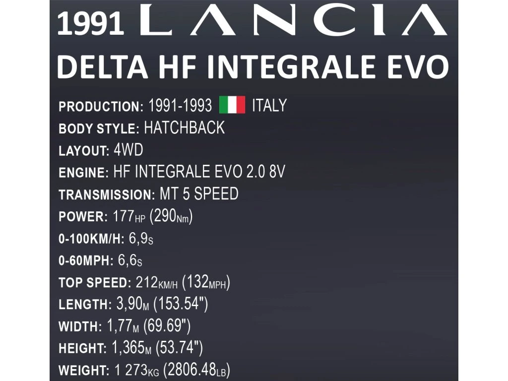 Lancia Delta HF Integrale EVO – ikona rallye WRC v měřítku 1:12! Vytvořte si vlastní verzi legendární Lancie Delta HF Integrale EVO a obohaťte svou sbírku o automobilovou legendu, která po léta dominovala mistrovstvím světa v rallye (WRC). V letech 1987–1992 byla Lancia Delta absolutním lídrem se šesti tituly mistra světa konstruktérů a čtyřmi tituly mistra světa jezdců.