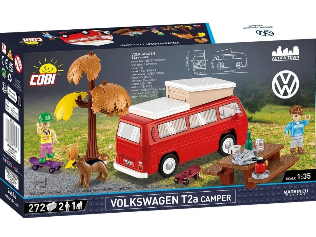 Připravte se na zábavu a nezapomenutelné dobrodružství stavbou modelu Volkswagen T2a Camper v měřítku 1:35! Toto ikonické vozidlo vás vrátí do časů, kdy bylo cestování plné svobody a každý okamžik strávený venku byl nezapomenutelným zážitkem. Volkswagen T2a Camper se stal symbolem dobrodružství, které bylo možné zažít s rodinou a přáteli na cestě na piknik, do hor, k jezeru nebo jednoduše do neznáma! Sada je plná nádherných detailů, které vás uvedou do světa volného cestování. S figurkami turistů, jejich doplňky a místem na piknik je hra s touto sadou úplně úžasná!
