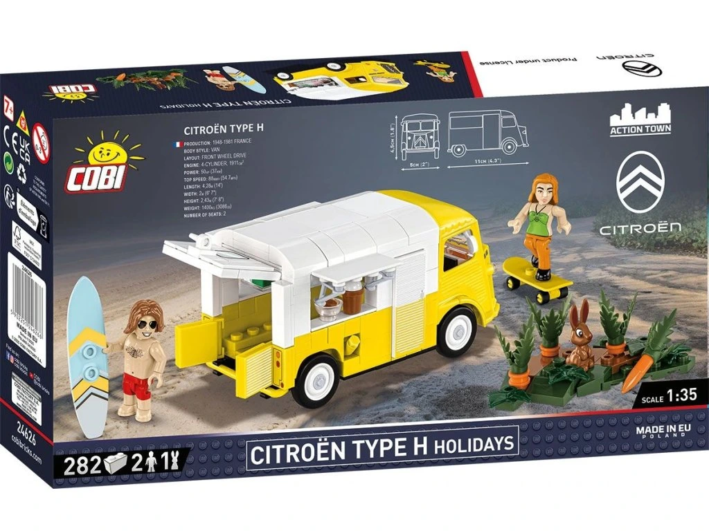 Postavte si vlastní mobilní zmrzlinárnu s Citroënem typu H! S každou kostičkou pocítíte, jak vaše fantazie ožívá a model se stává jedinečnou součástí příběhů, které si zahrajete. Není to jen zábava – je to cesta zpět v čase do slunečných dnů a lahodné zmrzliny. S Citroënem typu H se vaší kreativitě nekladou hranice – je to klíč k úplně novému příběhu. Stavte, bavte se, prožívejte nezapomenutelné chvíle plné radosti a objevujte další sady Citroën ze série ACTION TOWN od COBI!