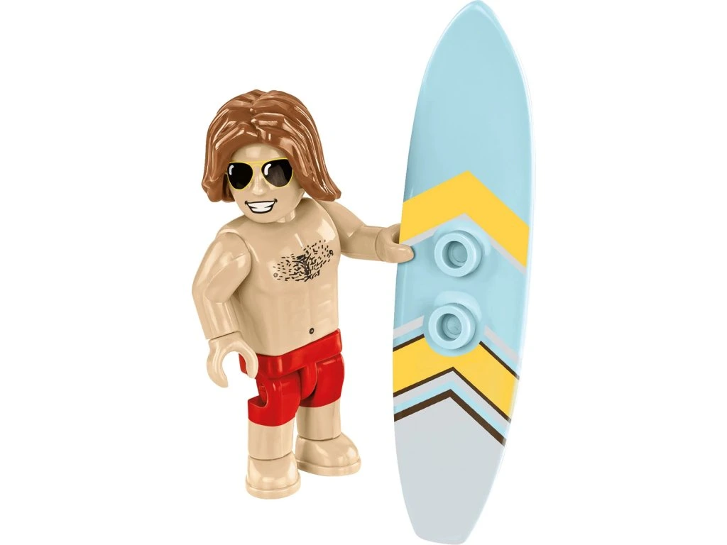 - Dvojice turistů – sada obsahuje dvě figurky turistů čekajících na výbornou zmrzlinu a ledovou kávu. S příslušenstvím jako skateboard a surf jsou připraveni na zábavu!