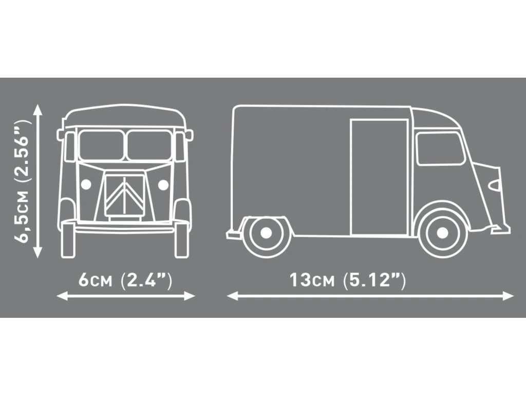 Žlutý Type H je více než jen vozidlo – je to ztělesnění kvality, mobility a retro stylu, který i přes věk stále ohromuje. Sada je perfektní jako sběratelský kousek, hračka nebo dárek pro fanoušky klasických aut, modelů či značky Citroën.