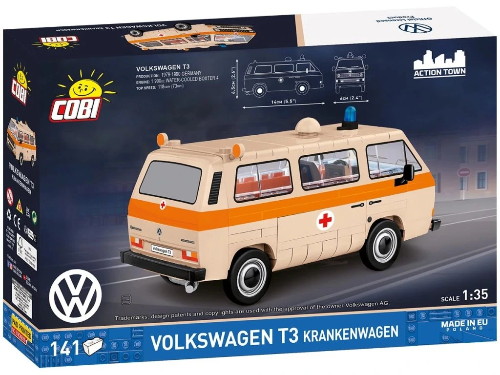 Volkswagen T3 Krankenwagen od COBI je pocta spolehlivosti, duchu 80. let a každodenní práci záchranářů, kteří poskytovali pomoc v náročných podmínkách. Stavbou tohoto modelu znovu vytváříte jedinečný kus automobilové historie. Přidejte si tuto legendu do sbírky a nechte ikonický T3 opět vyrazit do akce!