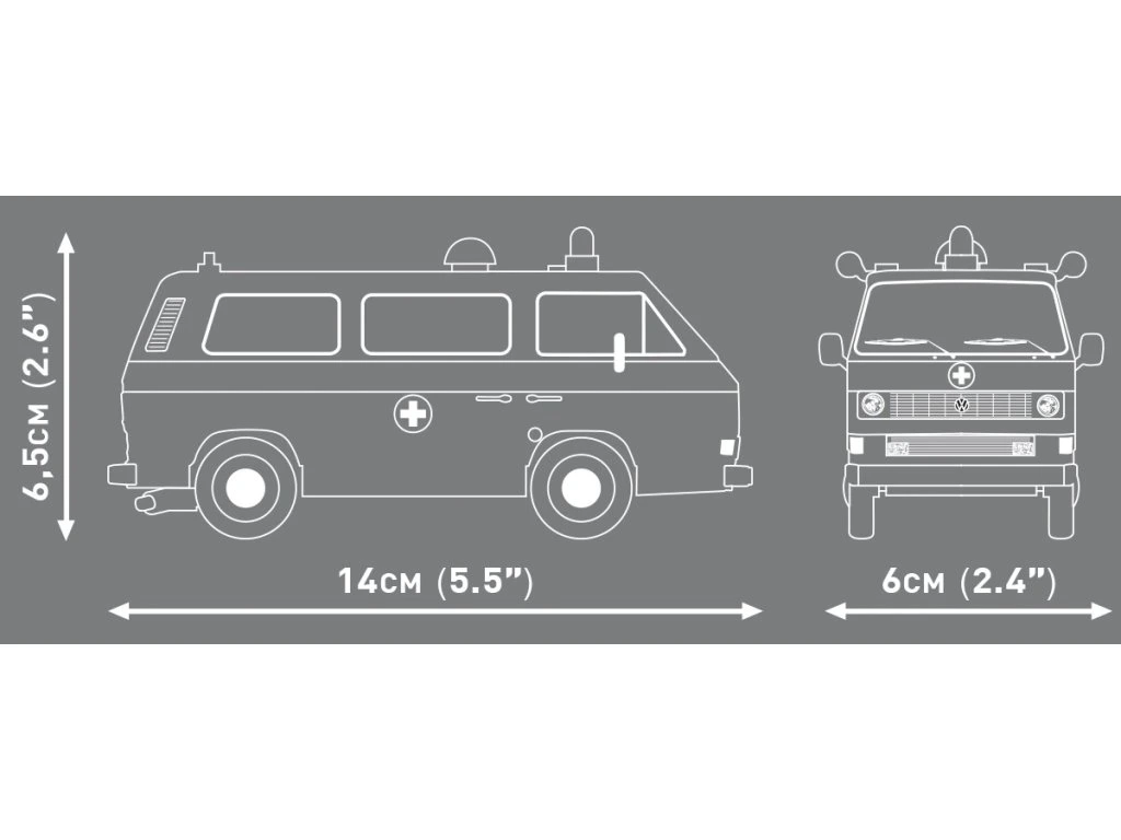 - Rozsáhlá kolekce – podívejte se na další vozidla ze série VOLKSWAGEN od COBI a vytvořte si vlastní sbírku ikonických strojů. Model Volkswagen T3 Krankenwagen skvěle doplní vitrínu vedle dalších ikon Volkswagenu.