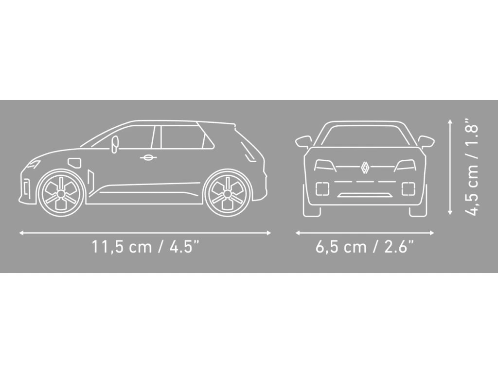 - Měřítko 1:35 – model věrně zachycuje retro-futuristickou siluetu nového Renaultu 5 od ikonických světlometů po výrazné podběhy kol.