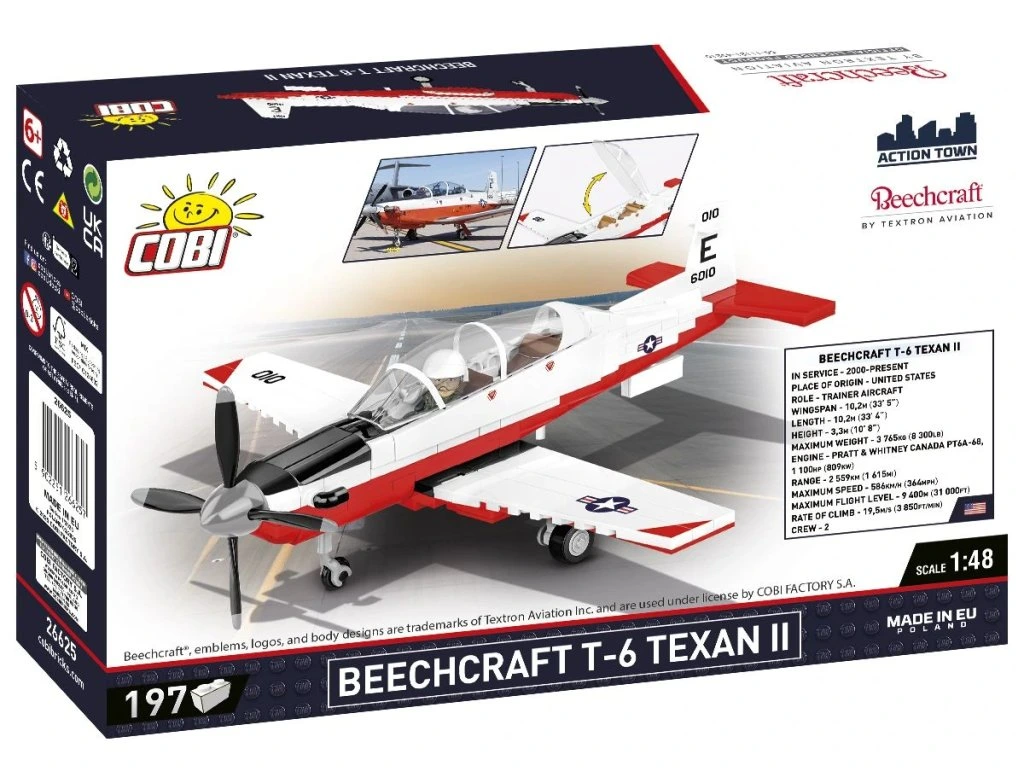 Tento realistický model od COBI je sestaven ze 197 dílků a věrně reprodukuje charakteristický tvar letadla T-6 Texan II s důrazem na detaily a správné proporce. V měřítku 1:48 je ideální na vystavení i hraní.