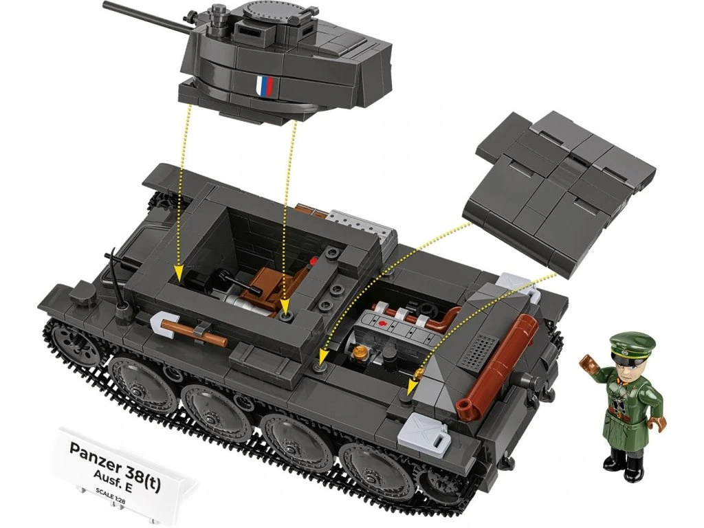 S touto sadou se sami rozhodnete, kterou verzi si postavíte – originální československý tank LT vz. 38 nebo německou adaptaci používanou během polského a francouzského tažení. Jedna sada, dva příběhy a nespočet hodin zábavy při stavbě!